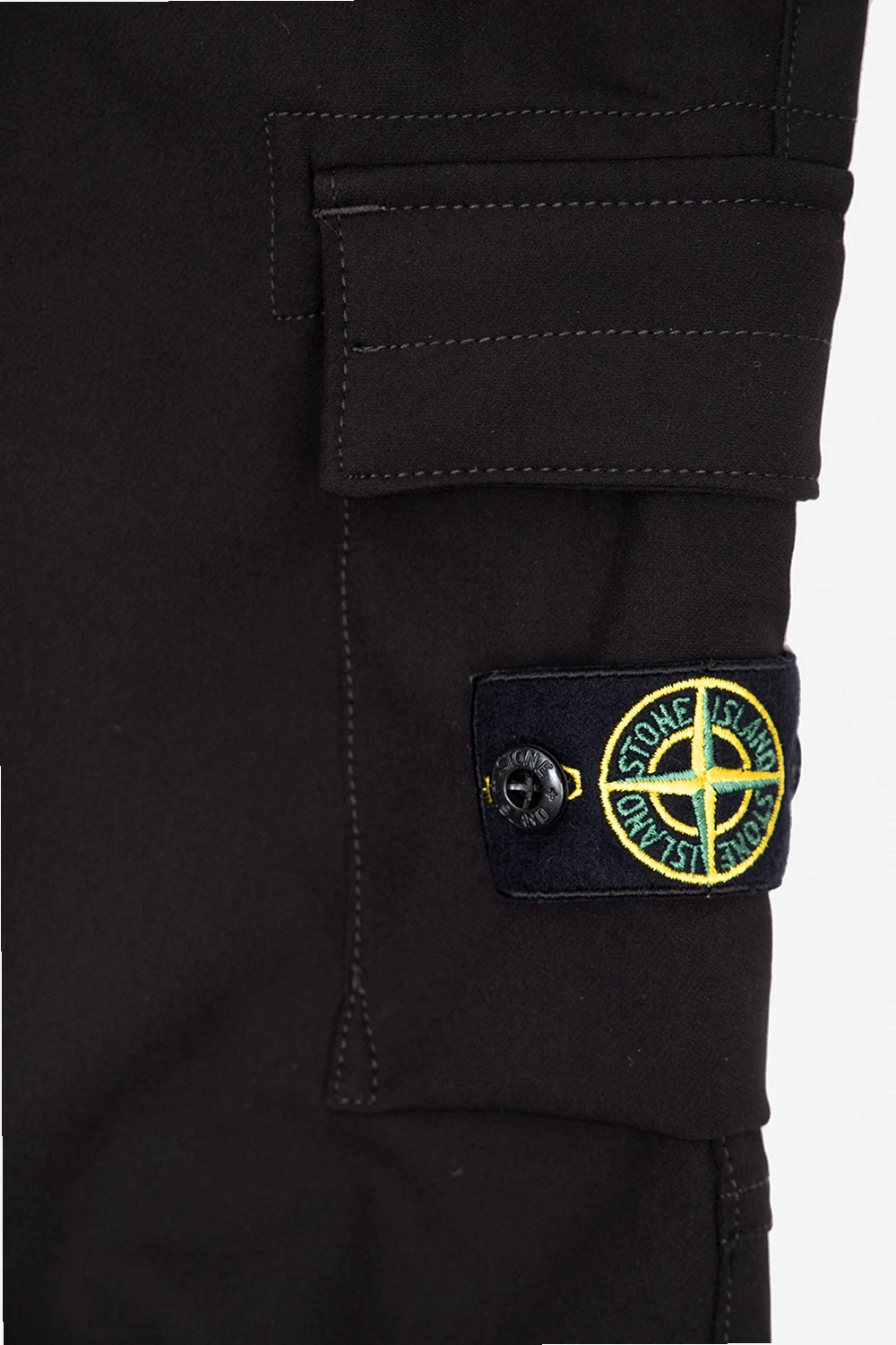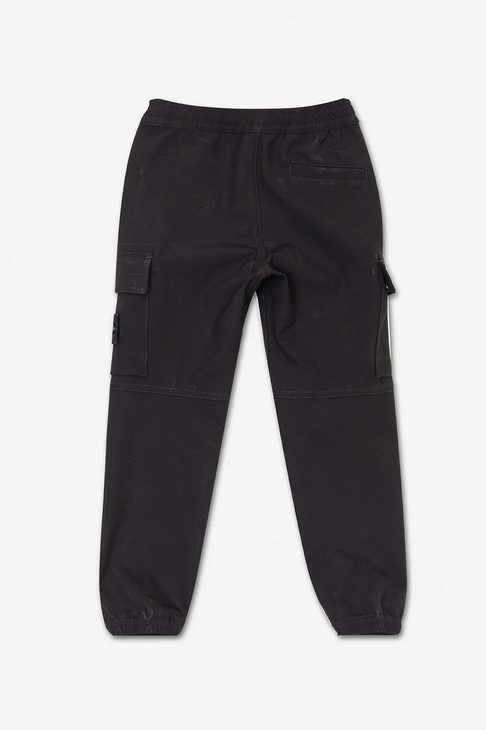 Black cargo trousers from Stone Island Kids. Fastened with drawstrings, this pair features a detachable logo patch and elasticated cuffs.