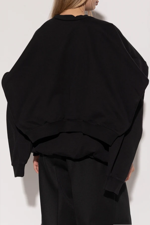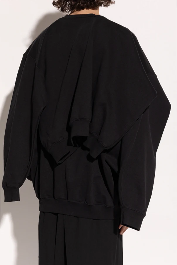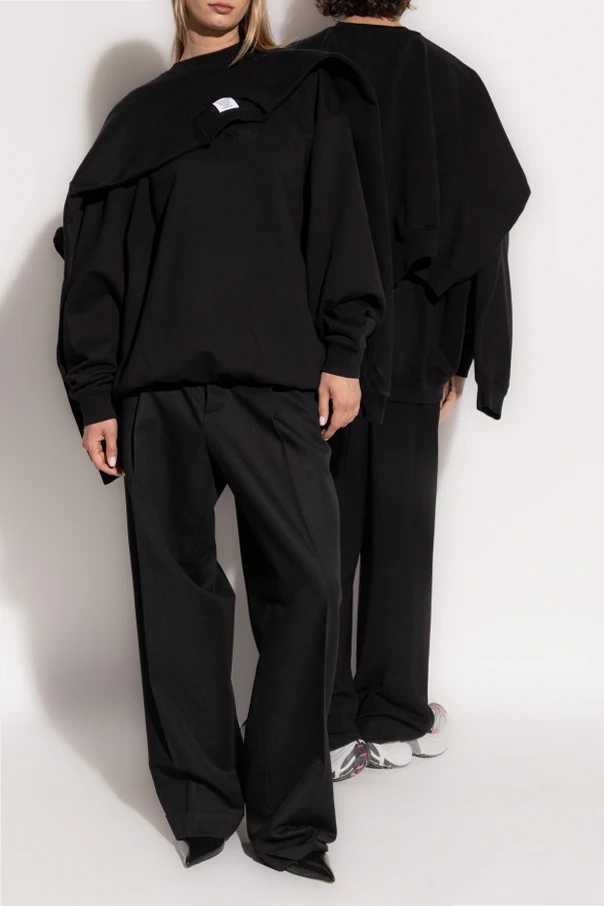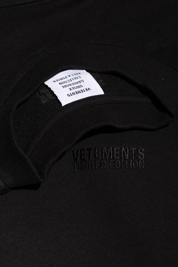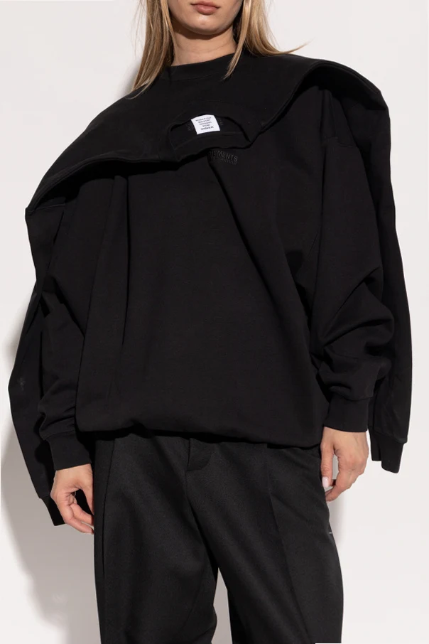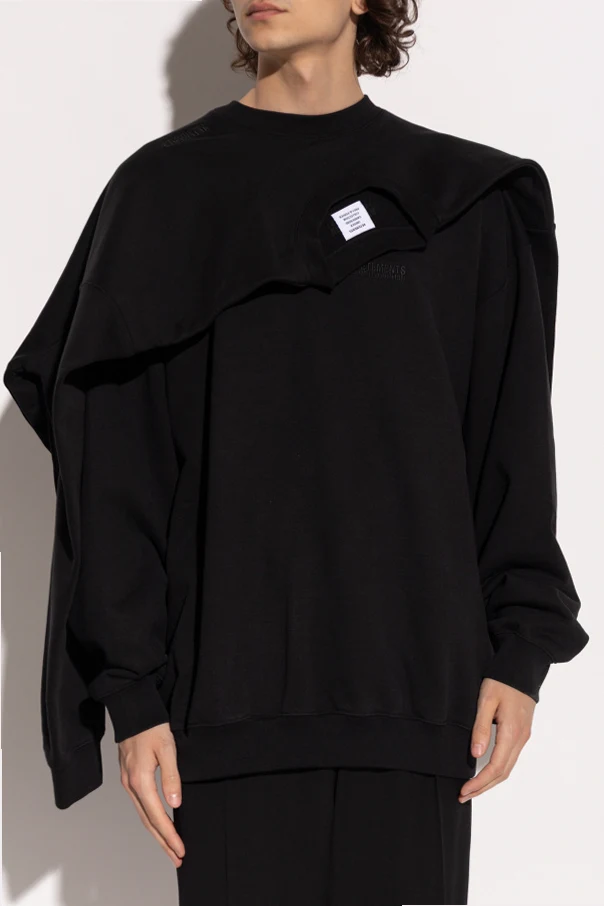Discover a striking interplay of innovation and luxury with this Black Crewneck Sweater by VETEMENTS . Unapologetically bold, its oversized silhouette redefines modern streetwear while retaining an air of effortless sophistication. Tailored with exquisite attention to detail, the sweater features a distinctive layered effect: a skillfully draped panel over the shoulder and chest evokes the illusion of a second sweater, enhanced by a unique double collar with an exposed label and artfully doubled cuffs at the back. Crafted from premium cotton knit, this piece seamlessly combines comfort, durability, and high-end design—a testament to the boundary-pushing vision of VETEMENTS’ creative collective. Why choose this product? Exclusive unisex design with avant-garde architectural accents Luxurious, high-quality cotton for superior comfort Distinctive layered construction sets it apart from traditional sweaters Signature streetwear flair from a renowned fashion innovator