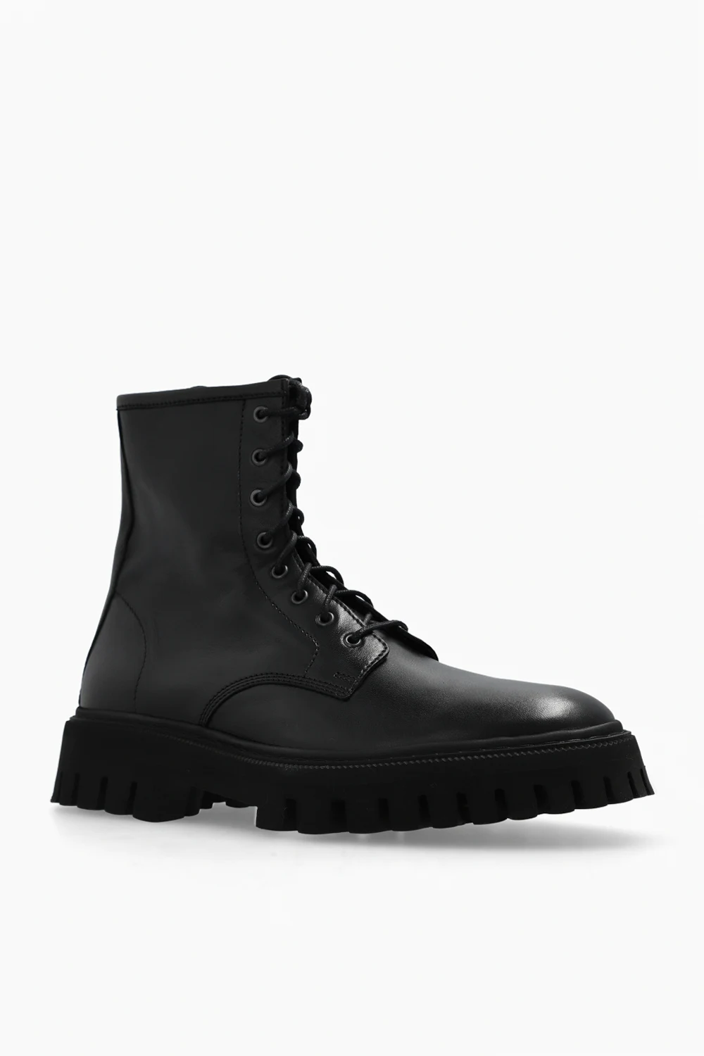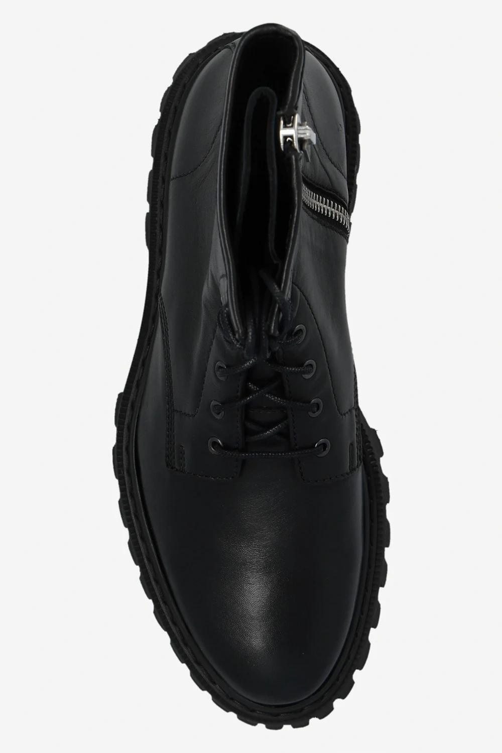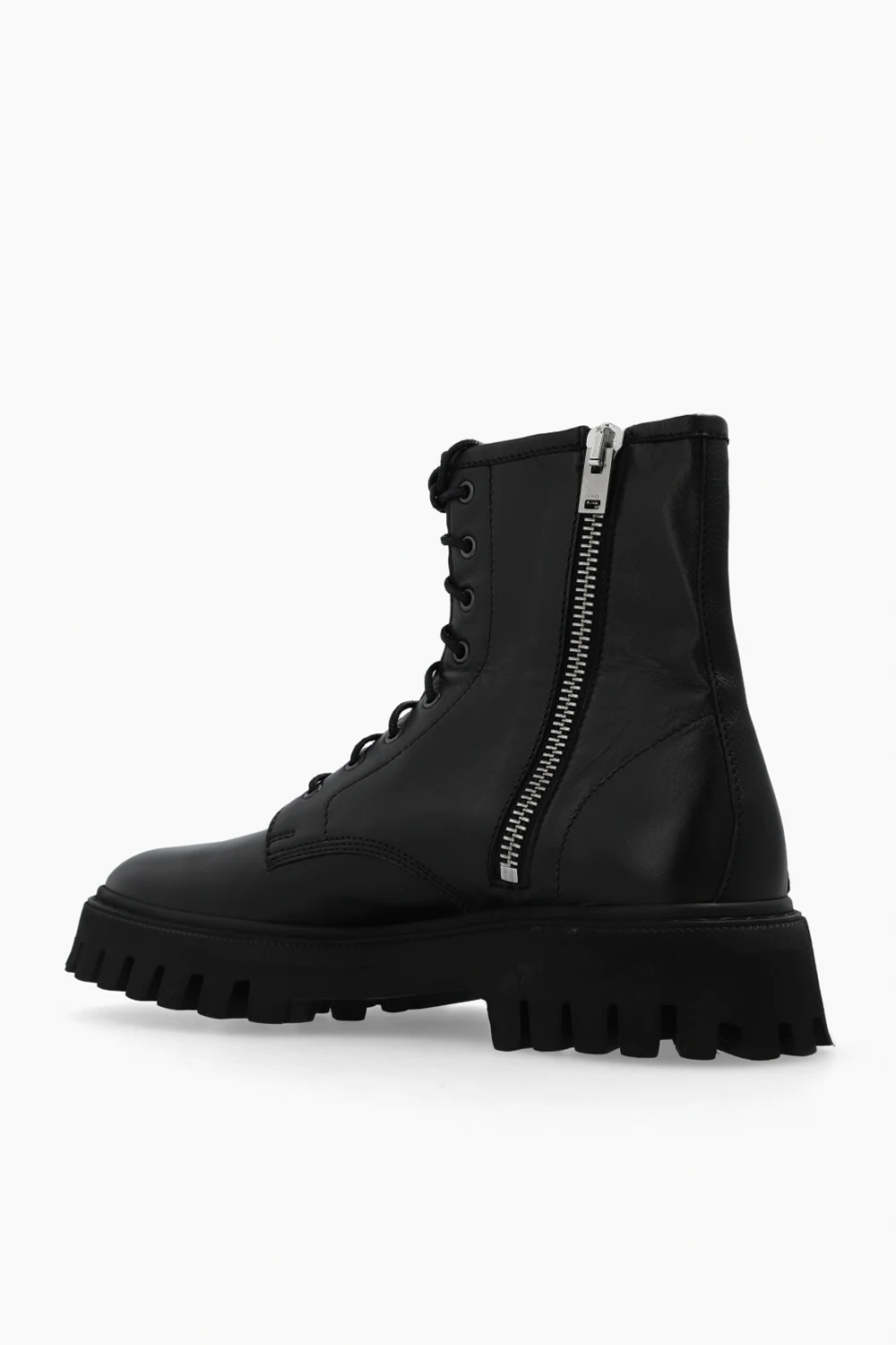 Black ‘Kosmic’ boots from Iro. Made of leather, this lace-up pair features a zip fastening and black rubber sole.