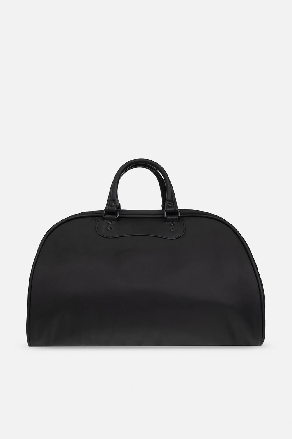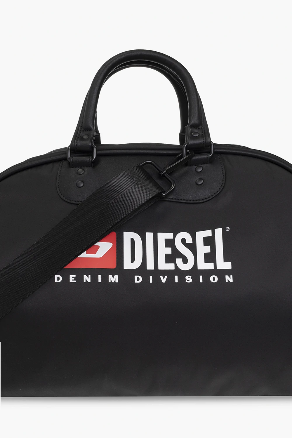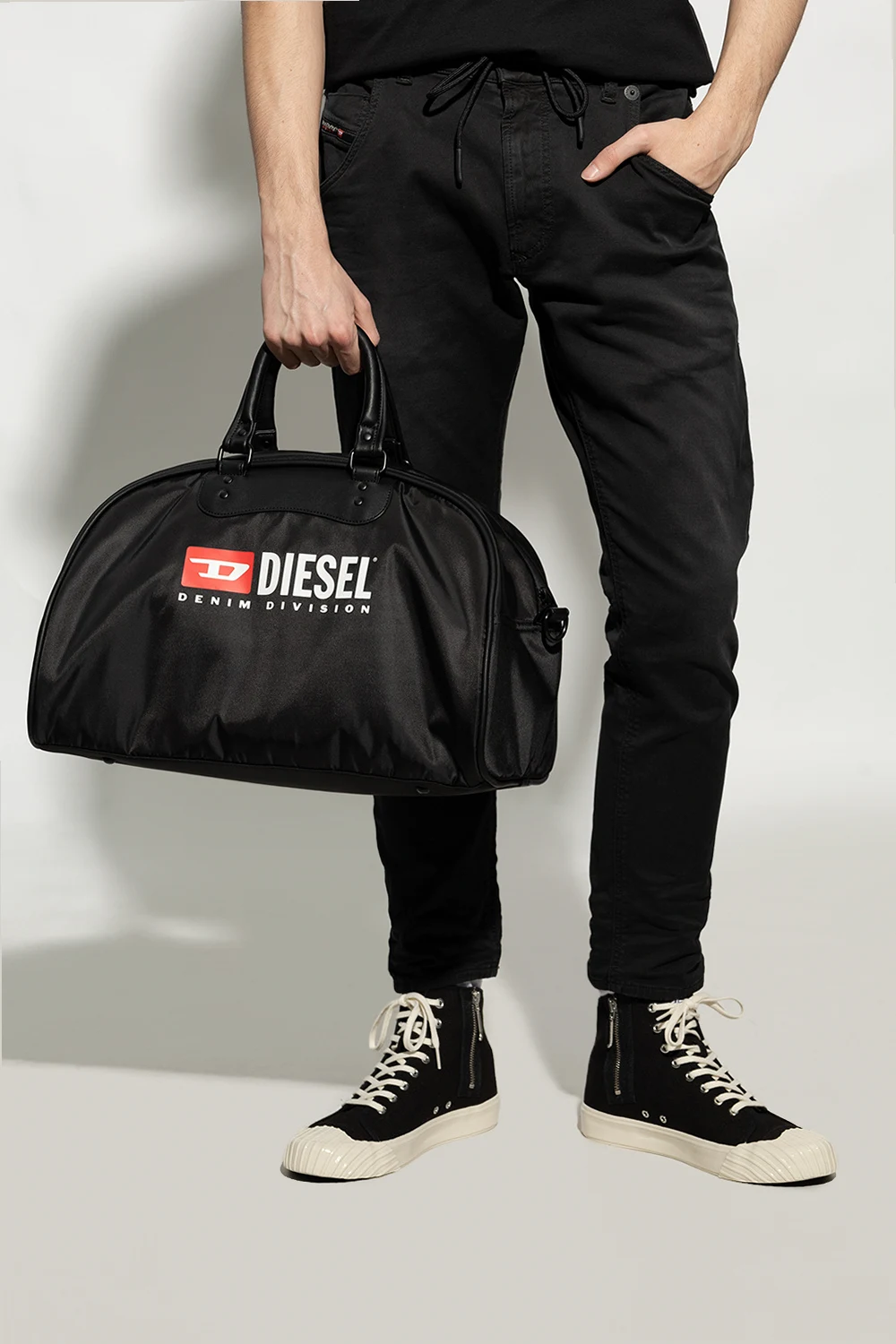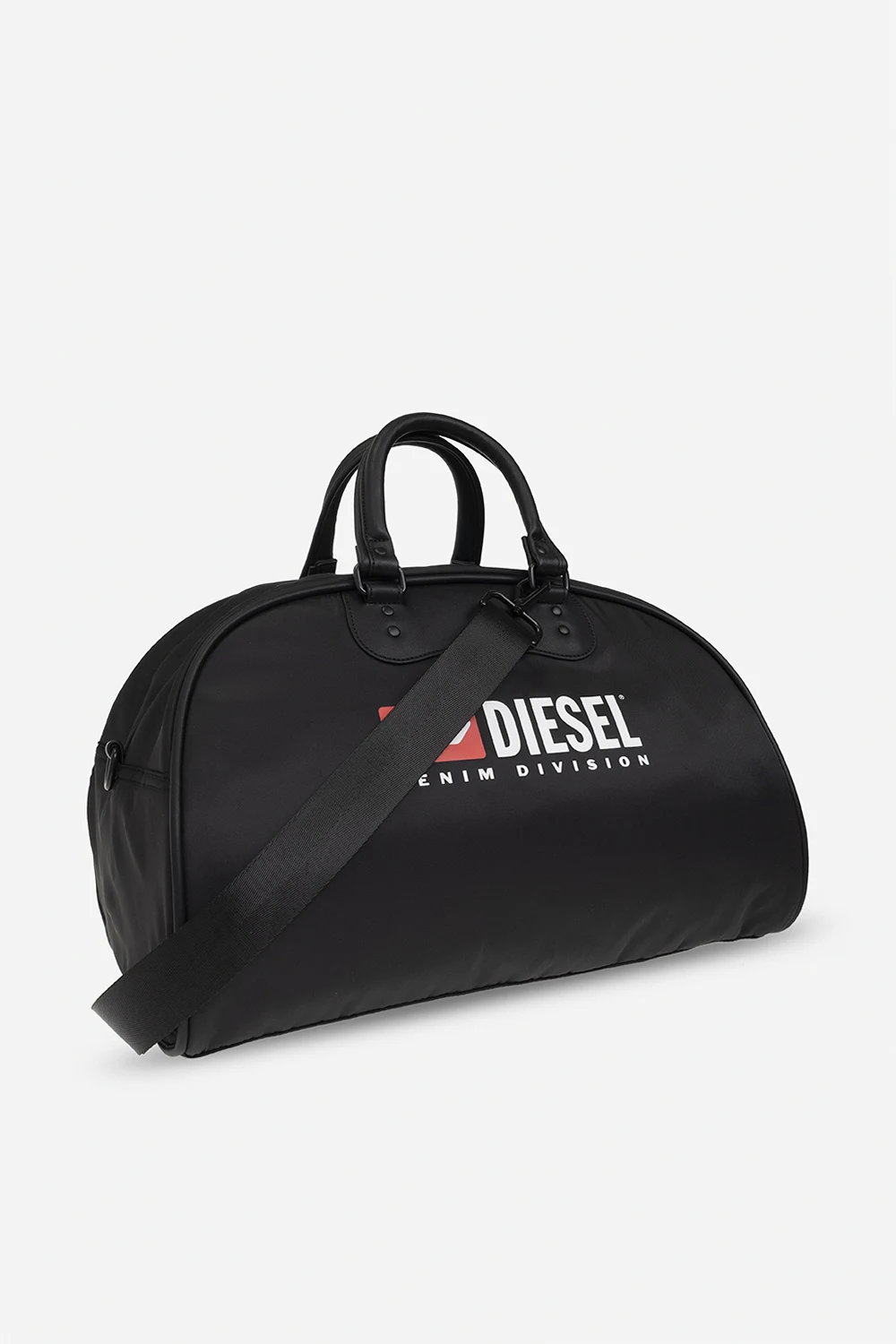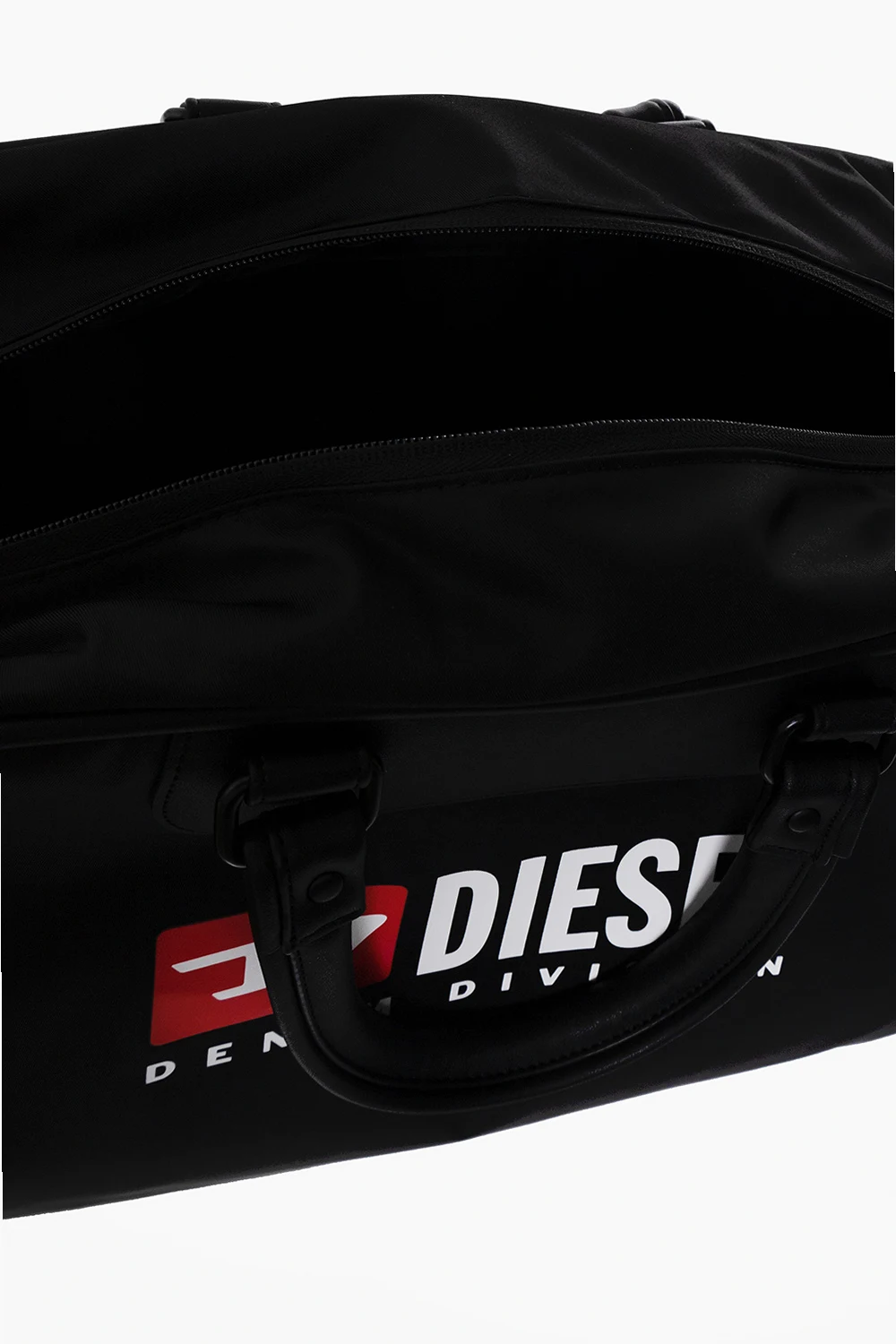 Black ‘RINKE’ duffel bag from Diesel. Printed with the brand's logo in white, this design features a two-way zip fastening, two half-round handles, black metal hardware and one internal compartment with two slip pockets and one zip pocket.