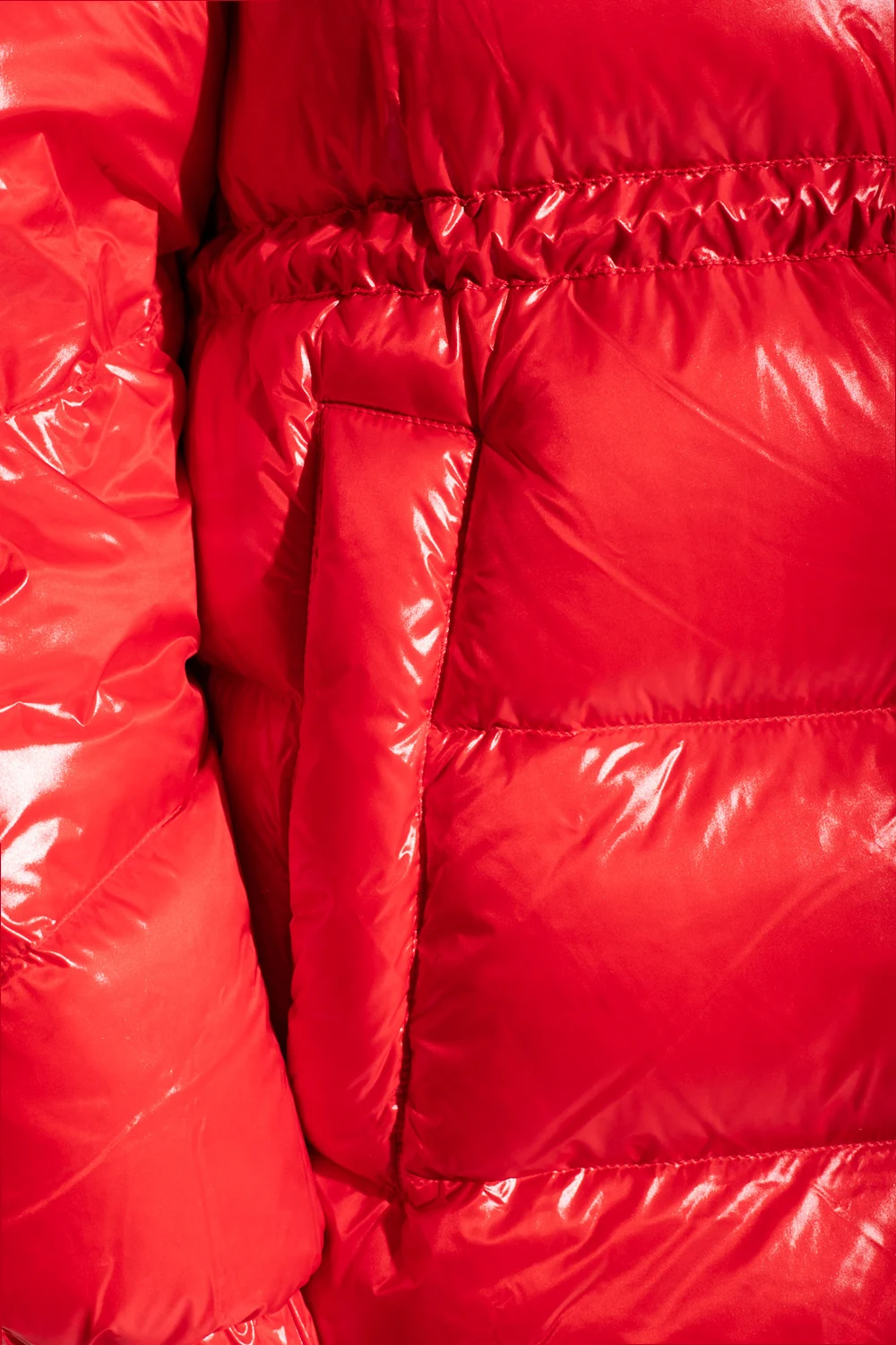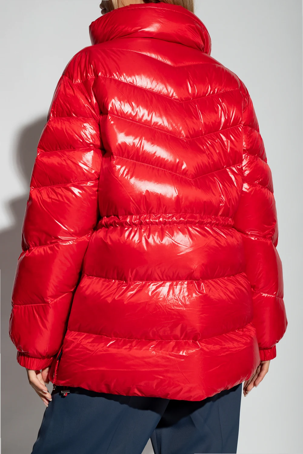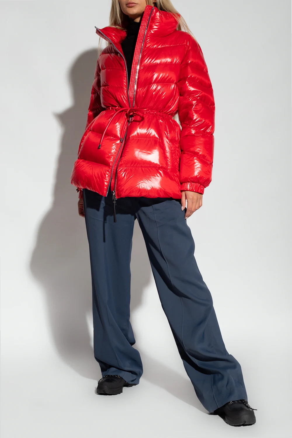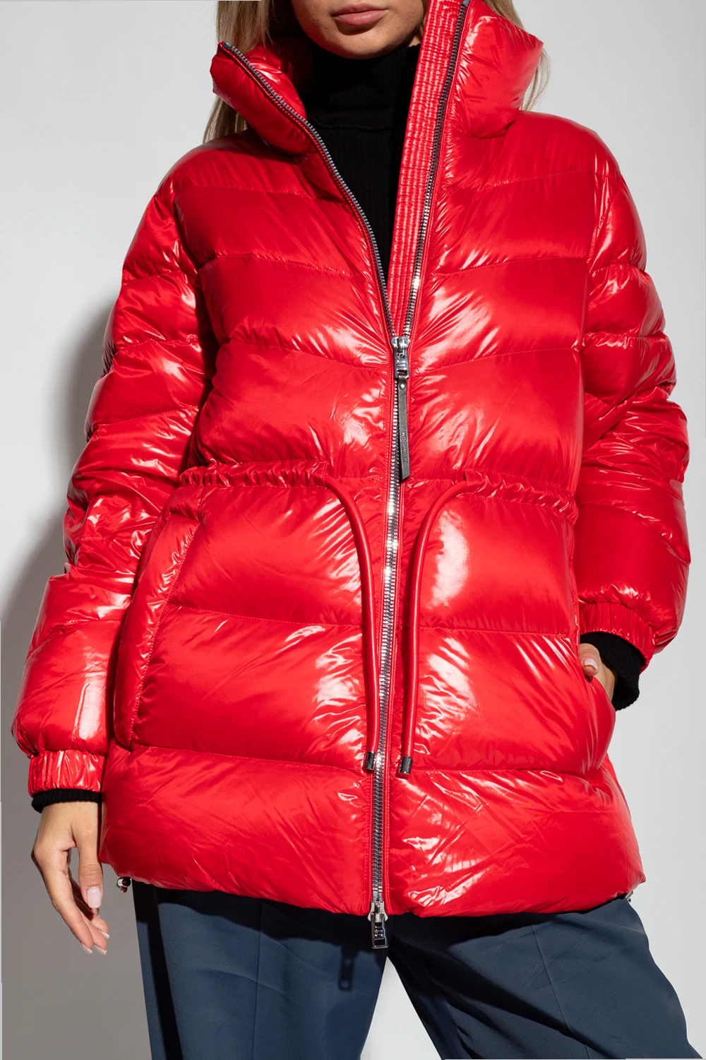 Red down jacket with a collar from Woolrich. Fastened with a two-way zipper, this style features a drawcord-adjustable hood and hem, side snap closures, two snap-fastened pockets and long sleeves. Temperature range: -10°C / -20°C.