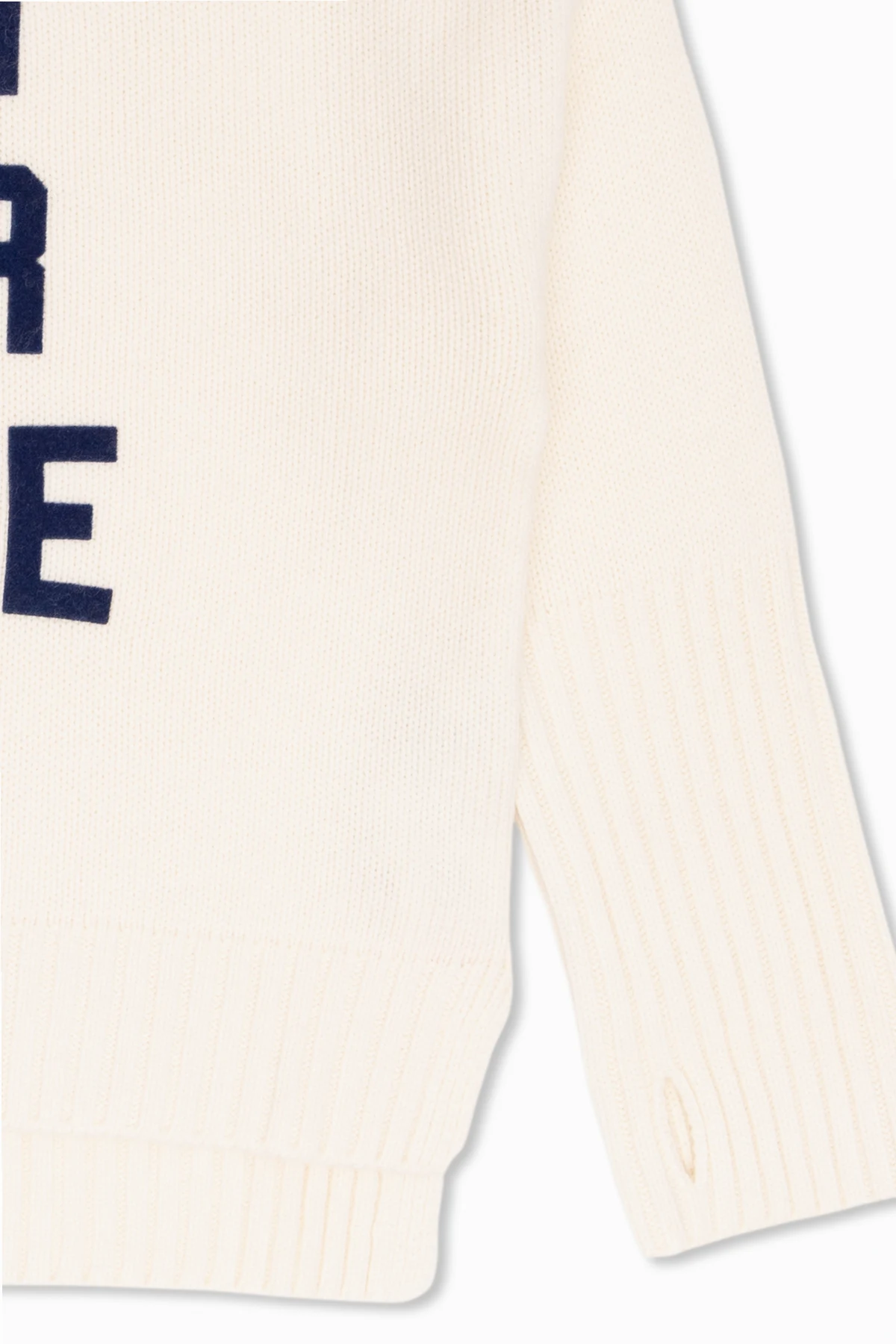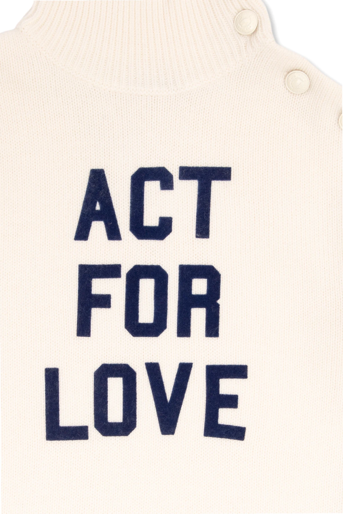 White turtleneck sweater from Zadig & Voltaire. Made of wool, this design features a velvet logo patch, button fastenings, long sleeves with thumb holes and ribbed trims.
