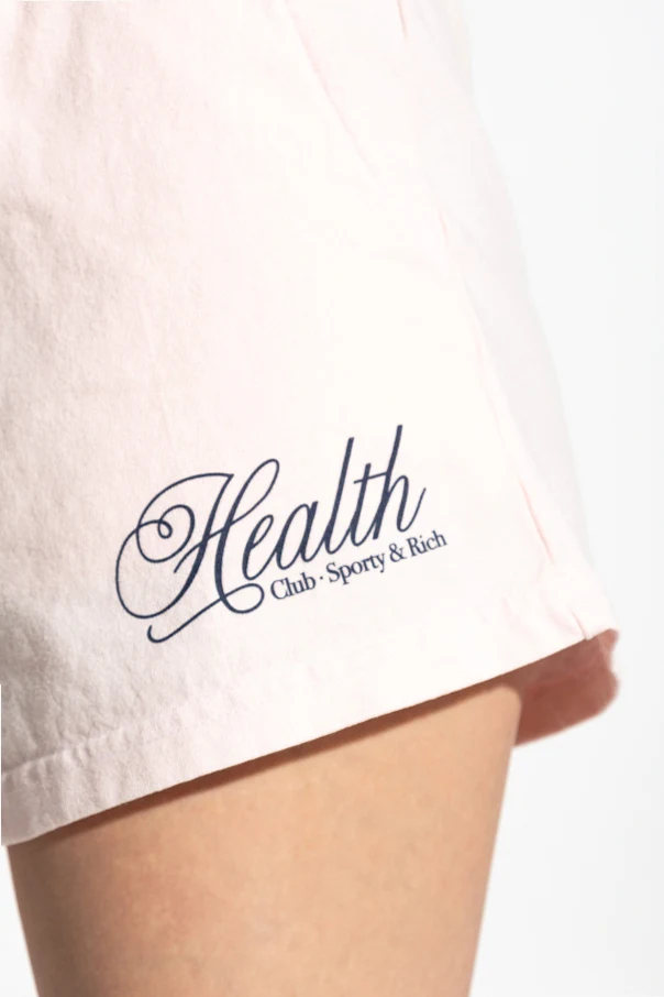 Embrace elevated simplicity with the Riviera Shorts by Sporty & Rich. Rendered in a sublime pink hue, these classic shorts exude effortless sophistication. Crafted from soft, high-quality cotton, the fabric's subtle velvety touch assures lasting comfort in any setting. The minimalist design features a streamlined, slightly relaxed silhouette with a wide, elastic waistband for an impeccable fit. Discreet side pockets and a single patch pocket in the back offer stylish function, while the elegant "Health Club - Sporty & Rich" logo on the left leg is a refined nod to the brand's revered heritage. Each pair personifies Sporty & Rich's ethos—timeless, understated luxury that seamlessly blends vintage sport inspiration with modern urban charm. Why choose this product? Exquisite minimalist design for versatile styling Premium, soft cotton for enduring comfort Signature logo detailing evokes iconic brand identity Functional front and back pockets for convenience Elastic waistband provides a custom-fit feel