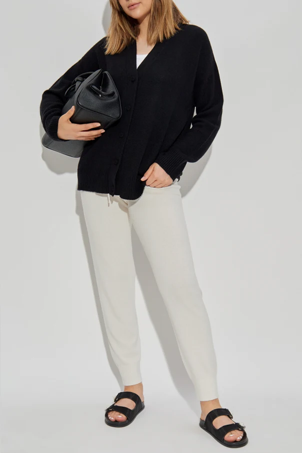 Discover the refined elegance of Fabiana Filippi’s Wool Trousers —a consummate expression of Italian craftsmanship. Skillfully tailored with a high-rise jogger silhouette, these trousers feature delicately tapered legs finished with subtle elastic cuffs, ensuring both exceptional comfort and a modern, streamlined fit. The supremely soft knit wool, thoughtfully blended with silk and cashmere, offers a smooth, tactile sensation and luxurious warmth, epitomizing sophistication in every detail. The minimalist design boasts a seamless, solid hue free from excessive embellishments, while the discreet elastic waistband with an adjustable drawstring ensures a precise, personalized fit. Made exclusively in Italy, these trousers radiate timeless appeal and unmatched quality. Why choose this product? Meticulously crafted from premium wool, silk, and cashmere Elevated high-waist and tapered jogger silhouette Soft, close-knit fabric for ultimate comfort Made in Italy by the renowned Fabiana Filippi Timeless, minimalist elegance suitable for any occasion