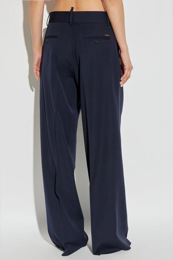 Immerse yourself in the timeless refinement of these exquisite wool trousers from Dsquared2 . Artfully crafted from premium, smooth wool with a subtly matte, substantial hand, these trousers epitomize sartorial sophistication and modern glamour.