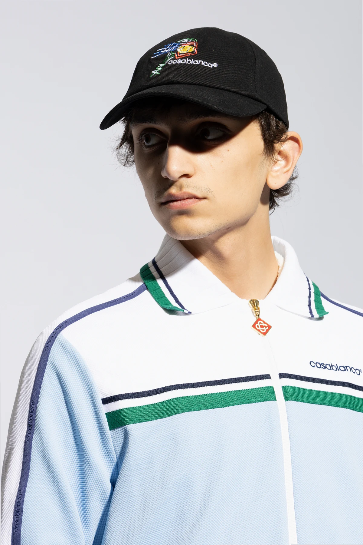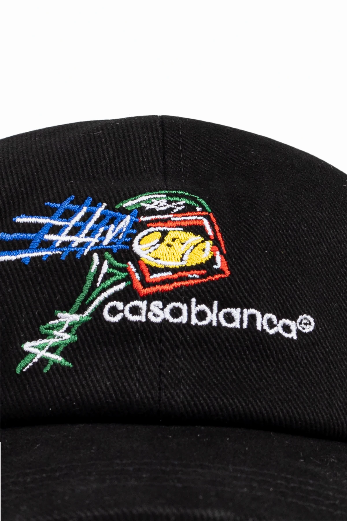 Introducing the Casablanca Designer Cap, a distinguished piece from the exclusive Casablanca collection. This cap is not just an accessory; it is a statement of elegance and refined taste. Crafted with meticulous attention to detail, its classic six-panel construction is accentuated by the intricate stitching visible on each panel, embodying the epitome of craftsmanship. The front of the cap features a vibrant, embroidered design that captures the essence of the Casablanca brand. A shield-shaped logo with a yellow background, encircled by a red outline with a green accent at the bottom, is crowned with a blue inscription. Below it, the designer's name, "casablanca," is embroidered in white lowercase letters, showcasing the brand's commitment to quality and its distinctive aesthetic. The cap's black hue ensures versatility, making it a flawless addition to any ensemble. A metal buckle on the adjustable strap at the back allows for a customized fit, enhancing comfort while maintaining the cap's sleek appearance. The harmony between the strap's material and the cap's overall color scheme exudes sophistication. Why Purchase This Product? Exclusive Design: Part of the elite Casablanca collection, this cap is a testament to unique style and luxury. Premium Quality: The detailed embroidery and high-grade materials signify the cap's superior craftsmanship. Adjustable Comfort: Equipped with a metal buckle for size adjustment, it promises an ideal fit for any head circumference. Versatile Style: Its classic black color and elegant design make it a versatile accessory, suitable for various occasions and outfits.