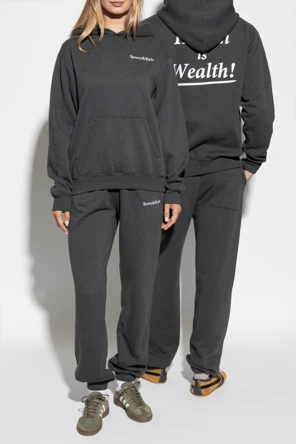 Revel in understated sophistication with this light gray (heather) zip-up hoodie from Sporty & Rich . Meticulously crafted from sumptuous cotton French terry, it boasts a plush, loop-textured finish that envelops you in comfort and refinement. The relaxed, unisex fit with drop shoulders and an effortlessly draped silhouette is complemented by a deep, streamlined hood—devoid of drawstrings for a clean, modern edge.