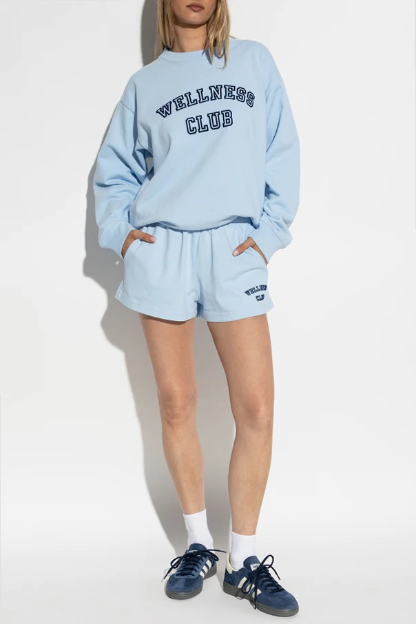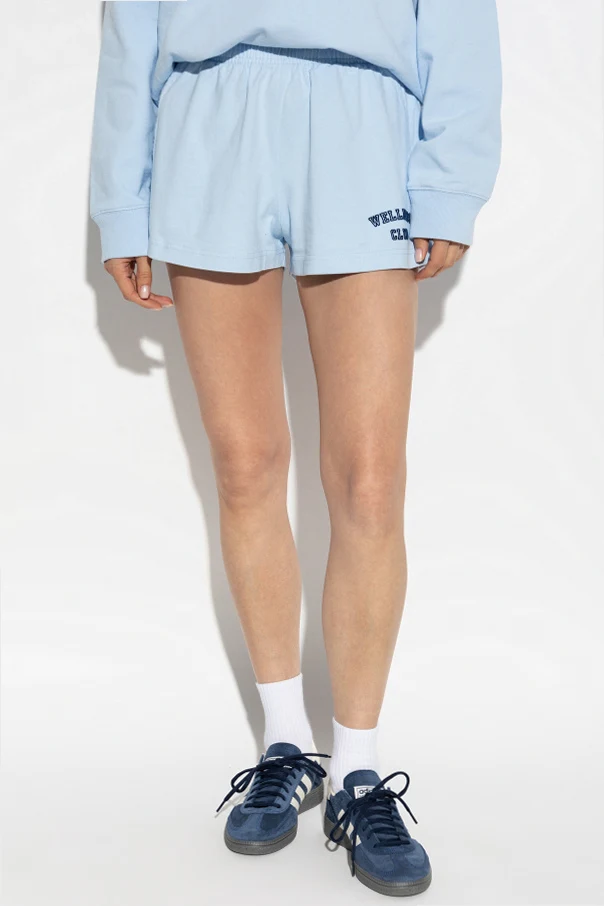Elevate your summer wardrobe with these exquisite Logo Shorts by Sporty & Rich . Crafted from a premium, airy cotton fabric, these shorts exude effortless elegance with their light blue hue and subtle micro-striped texture, accented tastefully in white. The flattering high-waisted, relaxed silhouette boasts an elastic, gently ruched waistband, ensuring both comfort and refined style.