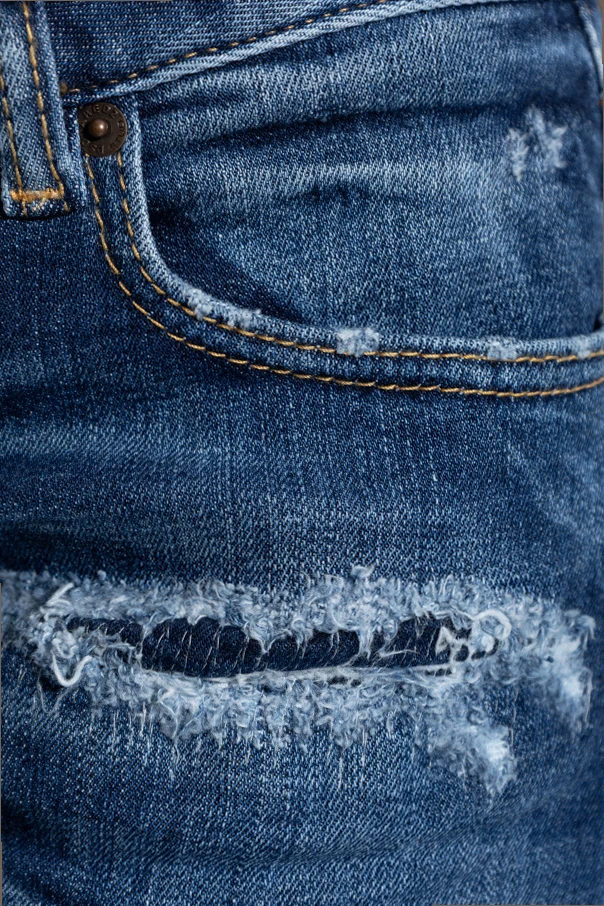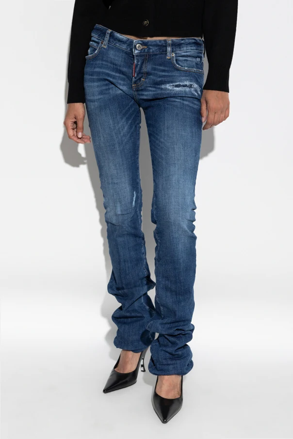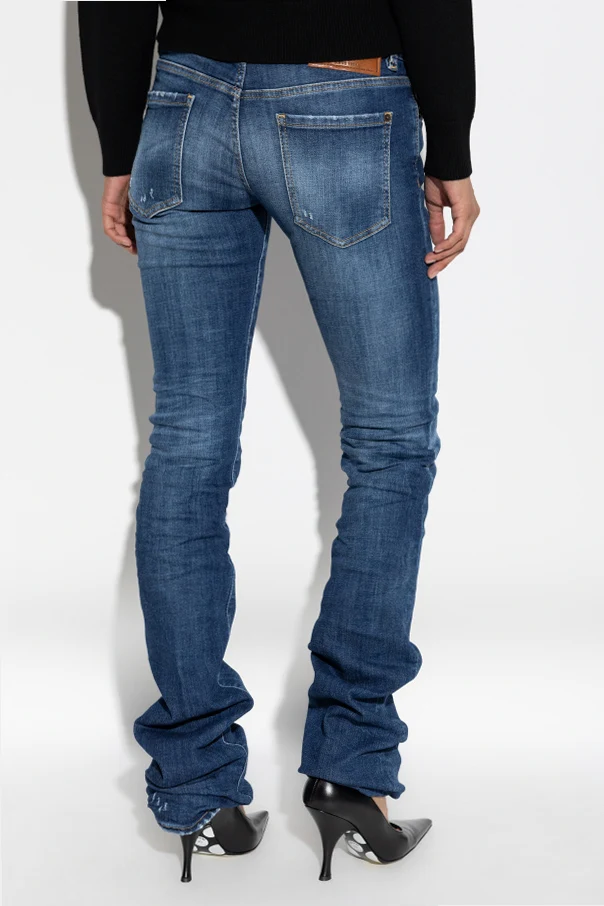 Experience a refined fusion of North American glamour and Italian sophistication with the Bootcut Sharpei Jeans by Dsquared2. Crafted from premium stretch denim, these jeans offer a classic bootcut silhouette—subtly flaring from the knee to impart a balanced, elongated profile. The deep navy hue is beautifully nuanced by artful fading and pronounced distressing at the thighs and front pockets, imbuing each pair with an authentic vintage character. Meticulous attention to detail reveals itself through striking yellow-brown contrast stitching and a signature leather patch, subtly elevating the overall aesthetic. The essential five-pocket design provides functional storage while maintaining a timeless edge. The harmonious blend of artistry and casual style ensures exclusivity and remarkable comfort with every wear. Why choose this product? Exclusive Dsquared2 design blending luxury with casual flair Comfortable, flexible denim with a flattering fit Distinctive distressed finishes and contrast stitching Timeless five-pocket configuration for optimal function Elegant, vintage-inspired deep navy colorway