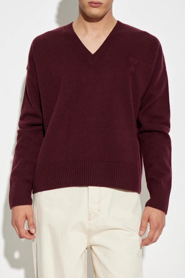 Experience understated elegance with the Merino Wool Sweater by Ami Alexandre Mattiussi . Impeccably crafted from an opulent blend of fine wool and cashmere, the sweater boasts a sumptuous, medium-density knit with a subtle, tactile texture. Its classic, gently relaxed silhouette is defined by a signature V-neckline adorned with wide ribbed trim, dropped shoulders, and elongated sleeves ending in broad cuffs. The hem and sleeves feature wide, refined ribbing that ensures comfort and timeless appeal. The smooth, monochromatic finish is enlivened only by the discreet, tonal embroidered heart motif with the brand’s distinctive “A” on the left chest—an elegant nod to its Parisian heritage. Designed as a unisex piece, this sweater effortlessly bridges the realms of casual sophistication and metropolitan chic. Why choose this product? Luxurious wool and cashmere blend for superior softness Contemporary, versatile fit with understated detailing Signature designer embroidery for a discreetly unique touch Inspired by the effortless style of Paris fashion Meticulously finished for enduring quality and style