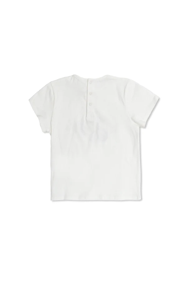 Elevate your child's early wardrobe with this exquisite white T-shirt with print from Chloé Kids. Expertly crafted from luxuriously soft, high-quality cotton, this classic silhouette features short sleeves and a refined crew neckline, ensuring lasting comfort and breathability for delicate skin.
