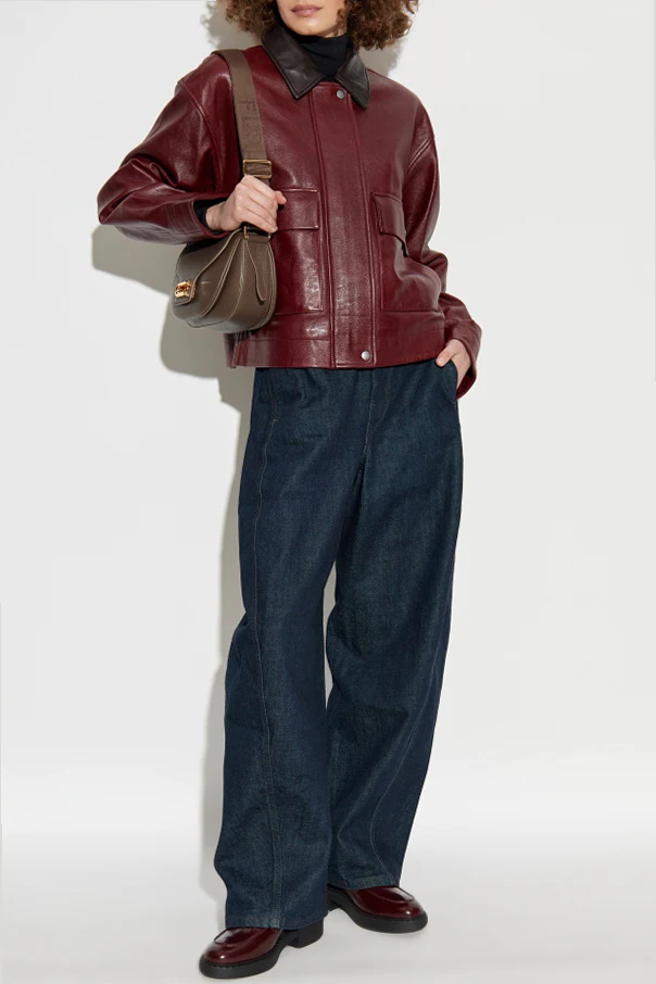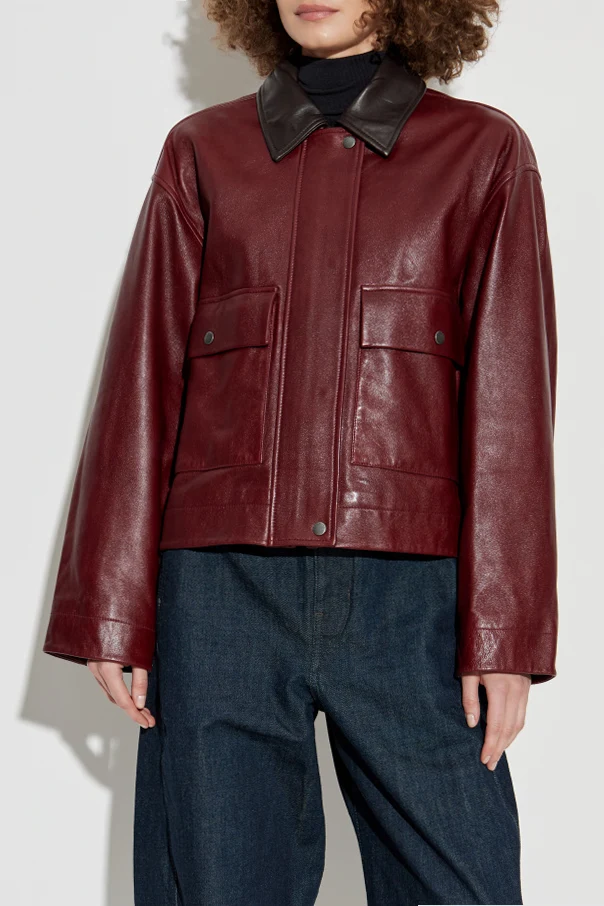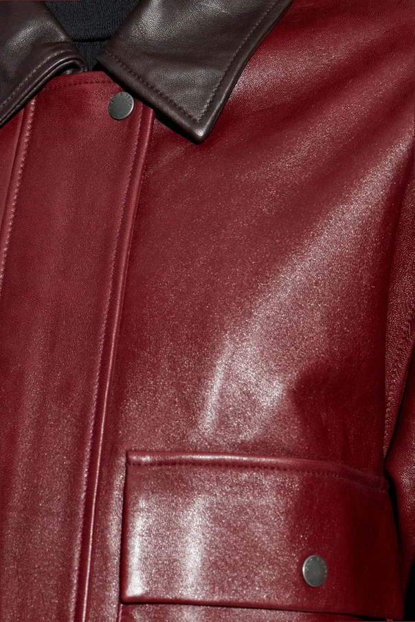 Exuding refined sophistication, this deep burgundy leather jacket by Rag & Bone seamlessly merges timeless allure with contemporary design. Crafted from smooth, premium lamb leather, its subtly lustrous finish is both indulgent to the touch and captivating to the eye. The chic, boxy silhouette and dropped shoulders offer a fashion-forward edge, complemented by bold, wide sleeves and an elongated, straight hem for modern elegance. Enhanced by a dramatic, contrasting black leather collar , this jacket features a discreet front snap closure and two generous chest pockets with covered snaps—perfectly blending utility with elevated style. The absence of visible logos guarantees understated luxury, while the meticulously crafted interior ensures lasting comfort. Why choose this product? Impeccable craftsmanship using supple, high-quality lamb leather Distinctive silhouette with thoughtfully executed construction details Contrasting collar and minimalist design for enduring sophistication Signature style from acclaimed designer Rag & Bone An exclusive statement piece for discerning wardrobes