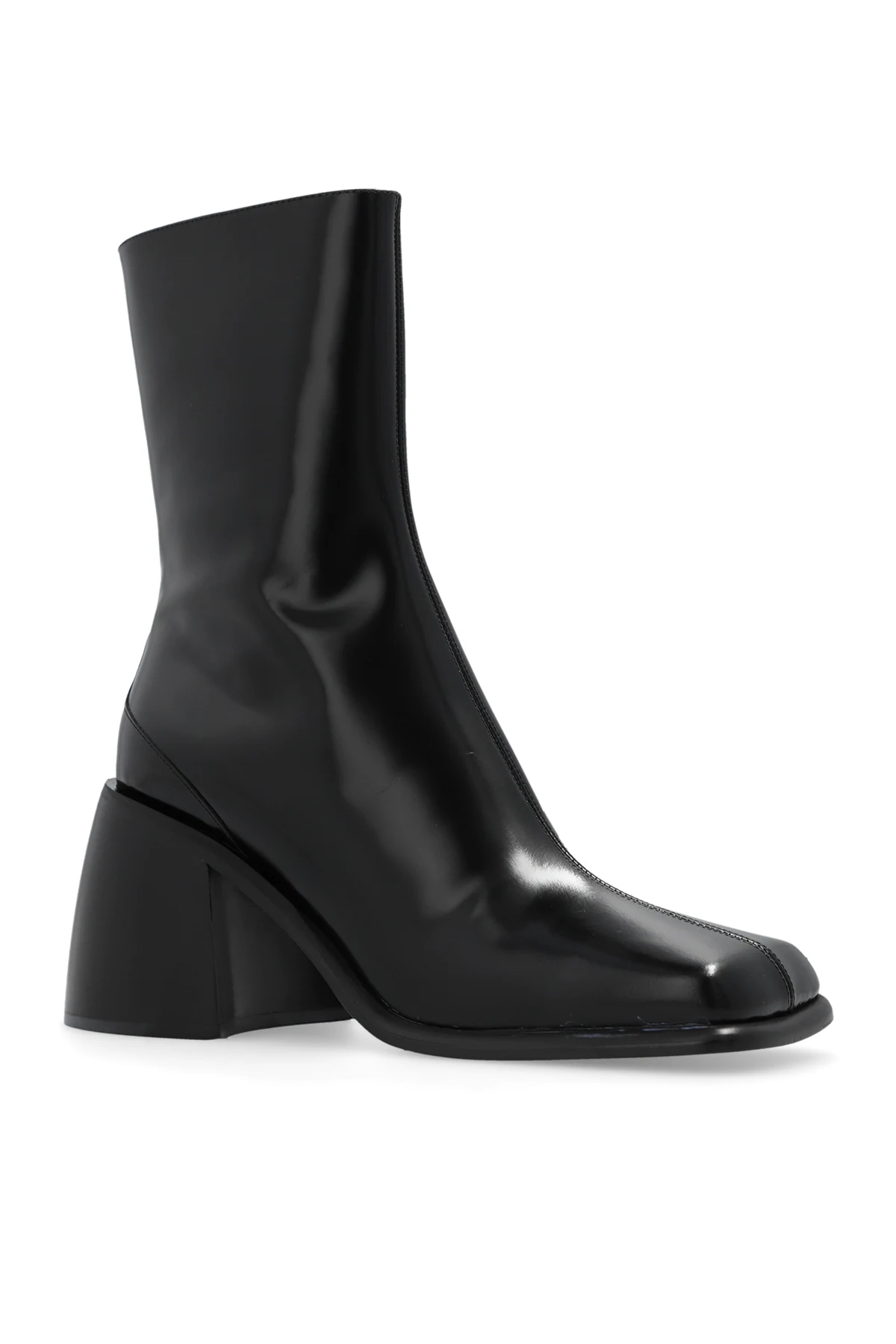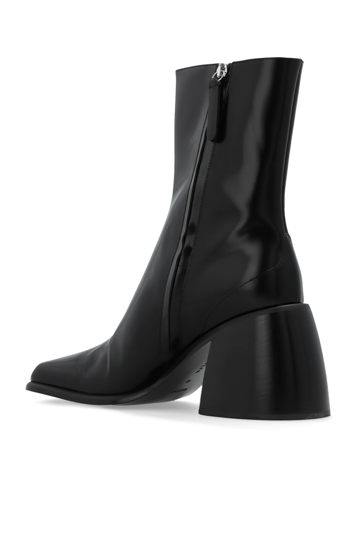 Black ‘Ella’ heeled boots from Wandler. Made of lamb leather. Fastened with a zip, this pair features a square toe and a black leather sole.