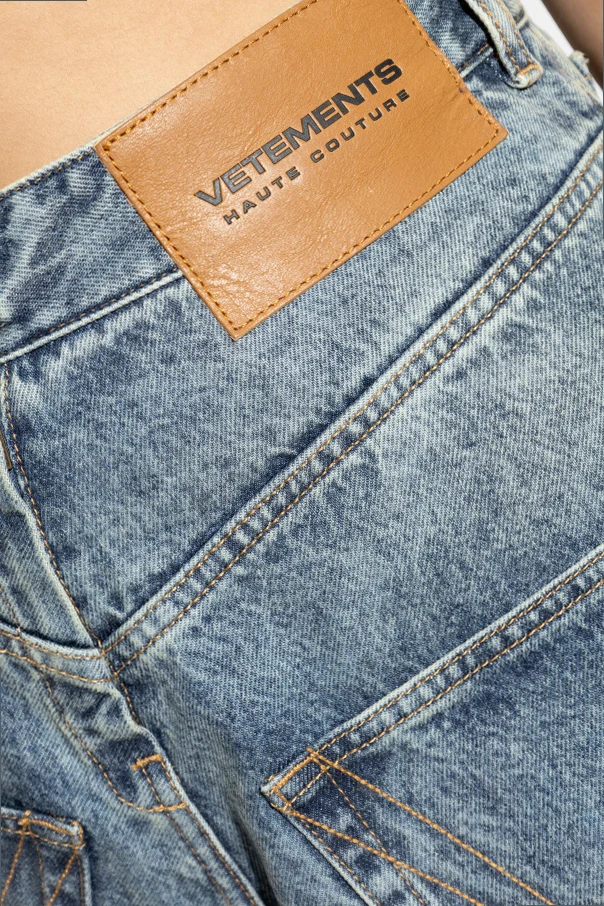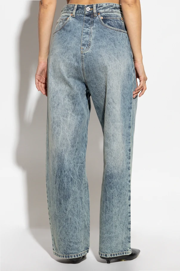 Discover an embodiment of refined urban style with these Wide-Leg Jeans by VETEMENTS , masterfully crafted for a unisex appeal. The distinctively wide, straight silhouette delivers a bold, oversize look, accentuated by pure, robust denim free from stretch—ensuring a structured, authentic drape and remarkable durability. Their light blue, marbled wash evokes an effortless vintage aesthetic, while the design’s focal point—substantial rear pockets, artfully adorned with sharp V-shaped topstitching—sets these jeans apart with confident flair. A camel-toned leather patch, elegantly placed on the back, pays homage to the artisanal heritage of the brand. Why choose this product? Striking unisex wide-leg fit for a contemporary look Exquisitely durable denim in pure cotton, no stretch Unique V-stitched oversized back pockets for visual intrigue Distinctive vintage-inspired marbled finish Signature VETEMENTS sophistication and modern street sensibility