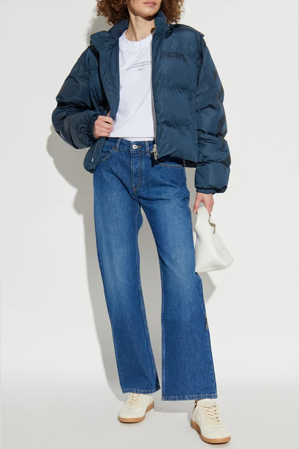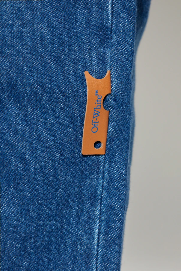 Experience an elevated approach to classic denim with these straight-leg jeans from Off-White™ , expertly crafted from pure cotton for enduring durability and a distinctive, robust texture. The silhouette features a timeless straight cut—neither tapered nor flared—providing a refined, versatile fit that transcends fleeting trends. In a smooth, medium blue hue with no distressing, these jeans embody understated sophistication, while five functional pockets—including the signature watch pocket—ensure practical elegance. A subtle, iconic touch: a small brown accent with a bottle opener-shaped cutout and the unmistakable Off-White™ inscription graces the right leg, celebrating thoughtful design and brand heritage. Why choose this product? Meticulously constructed from high-quality, pure cotton denim Classic straight-leg cut for an ageless silhouette Five-pocket design balances utility and style Distinctive Off-White™ designer detail adds unique character Effortlessly blends contemporary attitude with timeless appeal