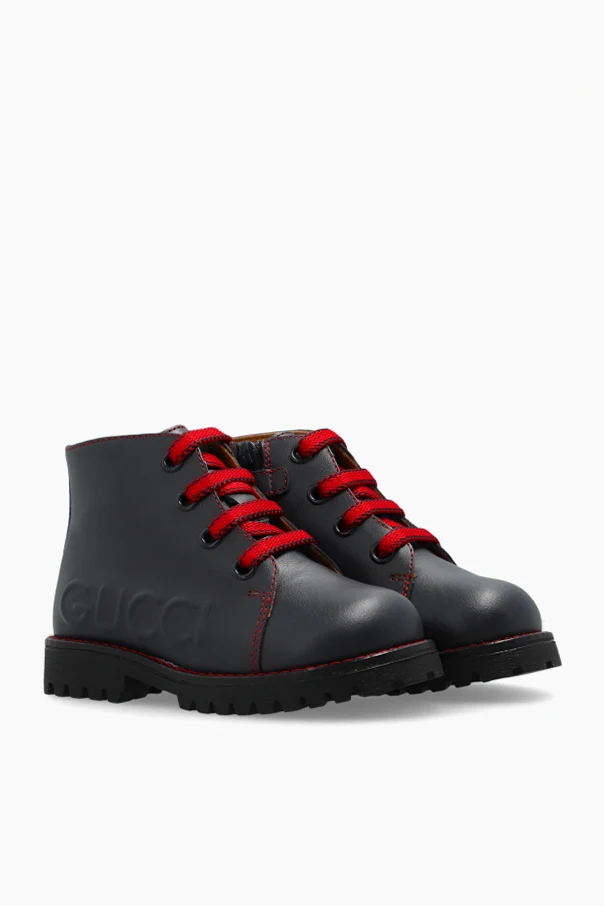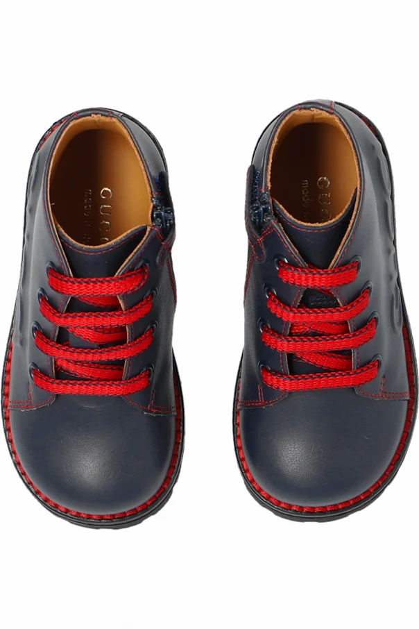 Introducing the exquisite Gucci Kids Leather Ankle Boots , a masterpiece designed for the discerning little feet. These navy blue boots, crafted from premium leather, epitomize elegance and durability. Tailored for children aged 0-36 months, they provide unparalleled support and comfort.