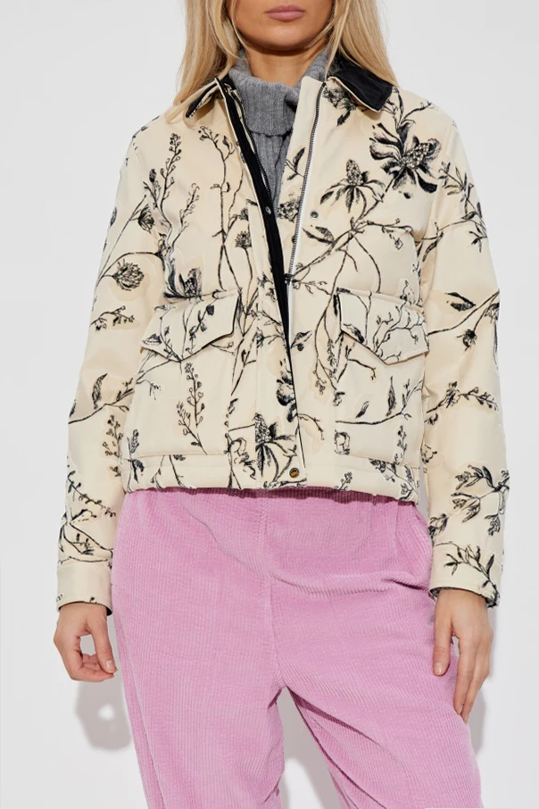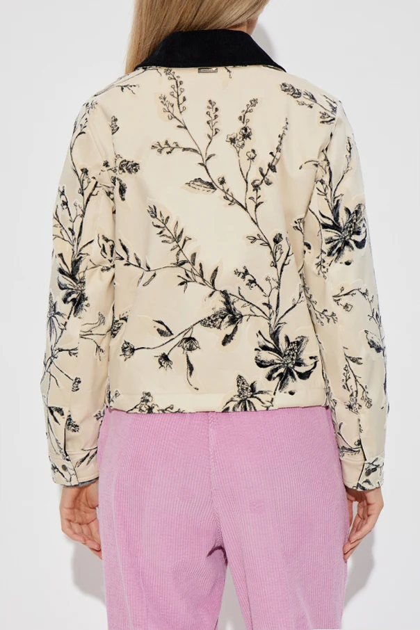 Experience refined sophistication with this velvet-finished patterned jacket from an exclusive Woolrich collection. The jacket radiates modern elegance with its straight, subtly cropped silhouette and long, classically set-in sleeves, while the predominant cream hue serves as a graceful canvas for the delicate, black artistic floral motif that adorns its exterior. Crafted from luxurious cotton with a visible velvet-like finish, this piece delights the senses with its soft, inviting texture. The collar, fashioned from a sumptuous dark material—reminiscent of velvet or fine corduroy—provides striking contrast and depth. Thoughtful details, such as the covered button placket and two generously sized patch pockets, underscore the jacket’s harmonious blend of artistry and functional design. Why choose this product? Distinctive botanical pattern for timeless sophistication Premium cotton exterior with opulent velvet-effect finish Exclusive dark collar for an elevated flourish Spacious, elegantly constructed front patch pockets Exquisite craftsmanship by Woolrich