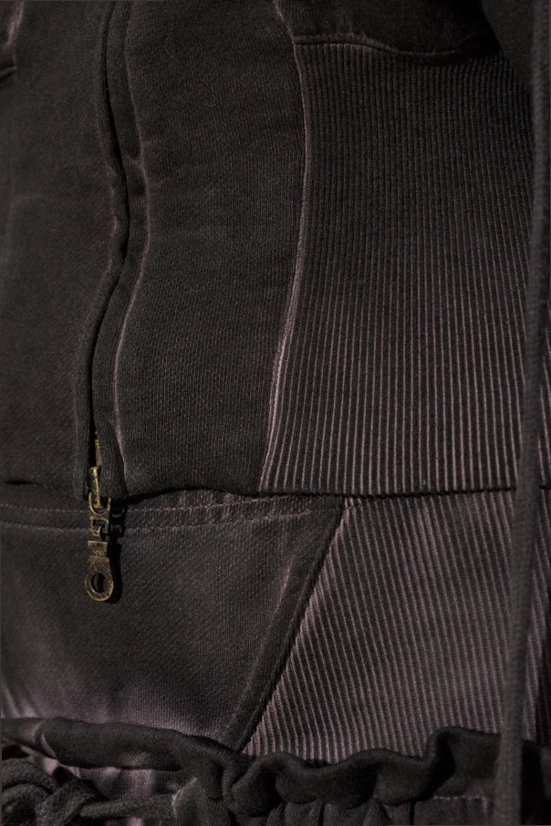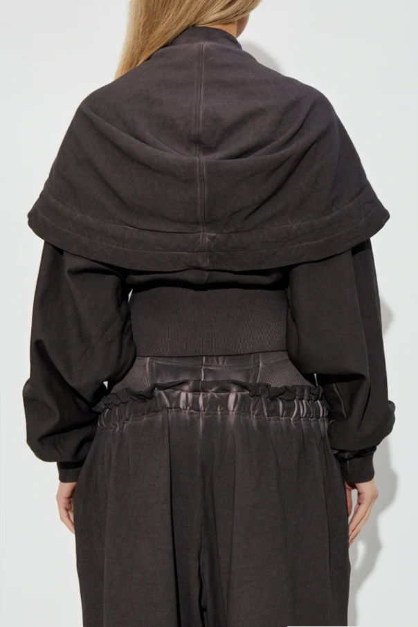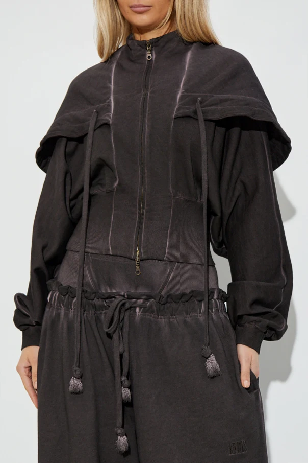 Discover the striking sophistication of the ‘Haze’ Hooded Sweatshirt from the exclusive KNWLS collection. Cloaked in a refined, smoky grey with a matte finish, this cropped masterpiece features a loose, boxy silhouette and wide sleeves elegantly tapered at the cuffs. The design’s centerpiece, a generous hood cascading over the shoulders like a cape, endows the piece with distinctive allure, setting it apart as a statement of avant-garde elegance. The full-length metallic zipper and ornamental slider effortlessly enhance its exclusive character, while pronounced vertical seams highlighted in a contrasting shade add modern artistry. Expertly crafted from a textured cotton blend with flexible accents at the waist, the ‘Haze’ captivates with thoughtful touches—decorative drawstrings tipped in sophisticated tassels embellish both hood and hem. Why choose this product? Unique cape-inspired hood for a statement silhouette Exquisite cotton blend with tactile texture Elevated by decorative vertical seams and metallic details Cropped boxy fit for contemporary appeal Carefully finished with designer tassel accents