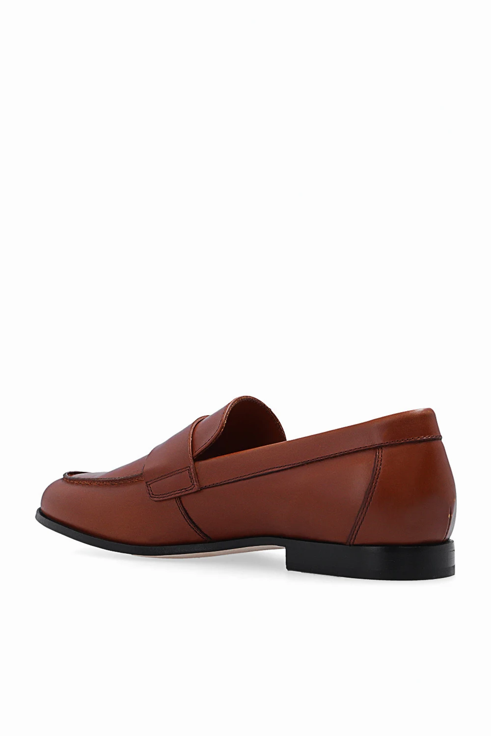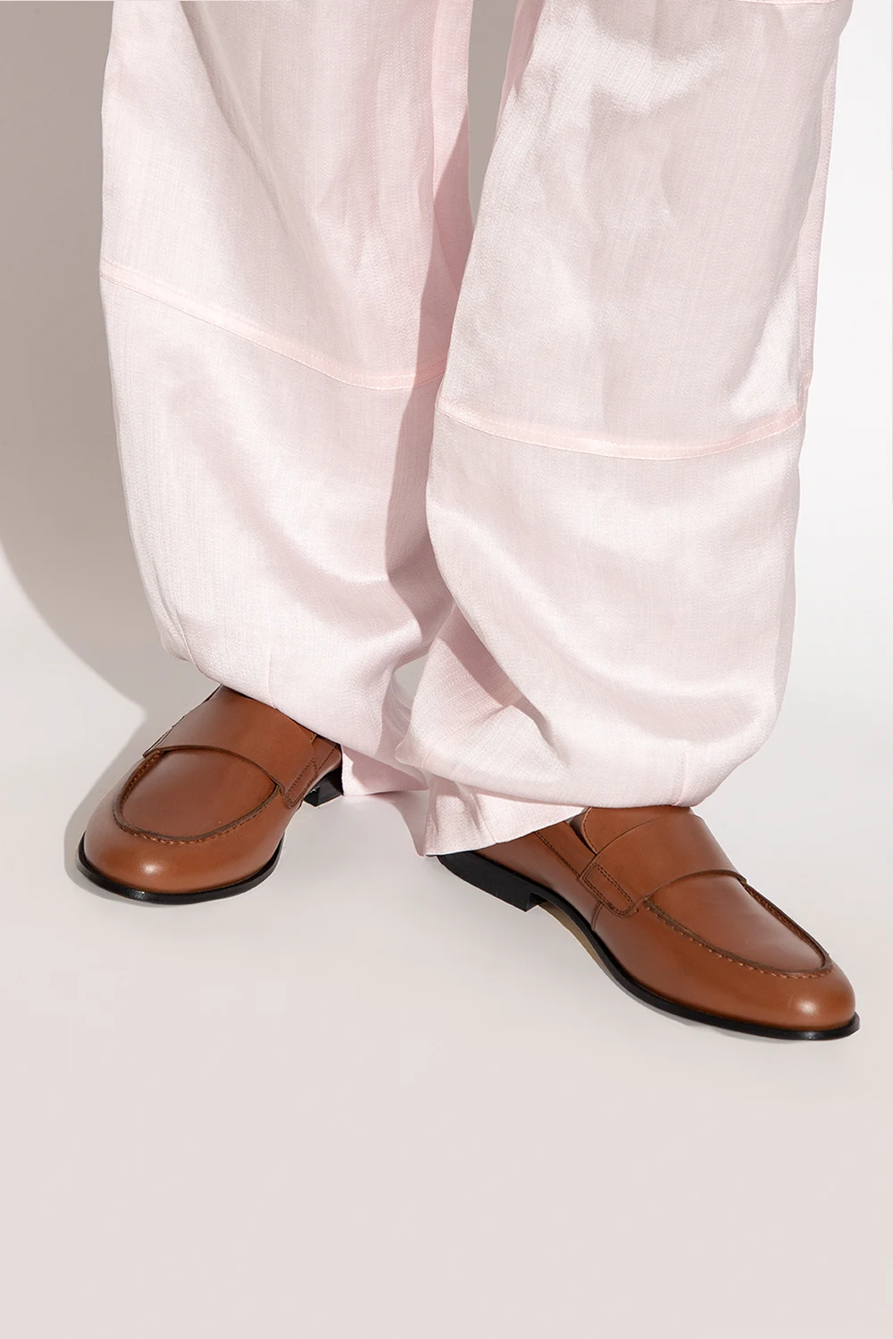 Brown loafers from Common Projects. Made of leather, this pair features a gold-tone print and beige leather sole.