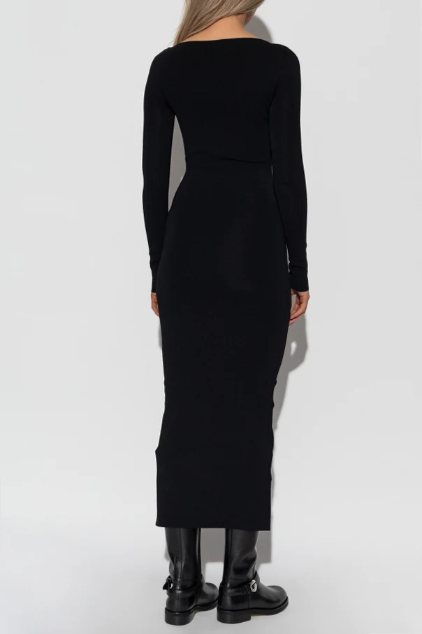 Immerse yourself in the understated sophistication of this mid-length, long-sleeve pencil dress by Entire Studios. Expertly crafted from a refined, resilient knit, its figure-flattering silhouette is designed to accentuate the natural contours of your form with poise and grace. The deep, classic black hue and impeccably smooth finish evoke a timeless minimalism, while the subtly bateau neckline lends a distinctly modern edge. Narrow sleeves delicately elongate the arms, imparting a statuesque elegance to the overall aesthetic. Marrying comfort with style, this dress is meticulously fashioned from a supple, medium-weight fabric, offering gentle stretch without sacrificing structure. The absence of overt adornment channels a sense of quiet luxury—perfect for both discerning daywear and sophisticated evening affairs. Why choose this product? Exquisite tailoring ensures a universally flattering fit Luxurious, elastic knit fabric for effortless movement and comfort Modern boat neckline elevates a minimalist silhouette Versatile mid-calf length suitable for any occasion Iconic design by Entire Studios for an exclusive wardrobe staple
