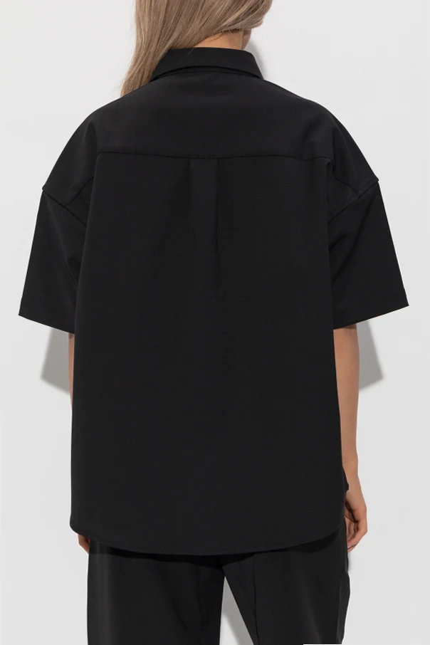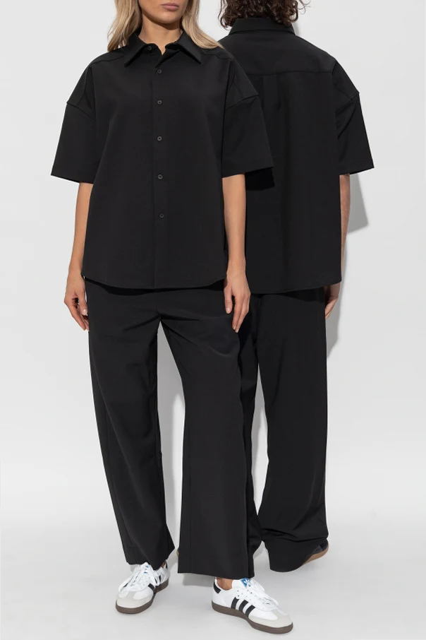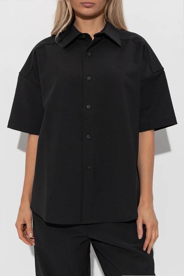 Exuding refined minimalism, this short-sleeve shirt by ENTIRE STUDIOS embodies effortless sophistication. The silhouette features a subtly oversized, boxy cut, with extended shoulders lending a contemporary yet relaxed edge. Crafted from a premium blend of smooth, high-grade fabrics, the shirt offers an unparalleled harmony of comfort and structure. Wide, short sleeves with clean hems team seamlessly with a classic, structured collar, while matte black buttons span the length of the front, discreetly accentuating the shirt’s impeccable tailoring. The absence of visible pockets or markings ensures an unblemished, polished look. At the back, a broad shoulder yoke and central box pleat unite style with ease of movement, culminating in a quietly striking statement piece. Why choose this product? Exquisite, smooth-touch material for elevated comfort Contemporary oversized cut with fine tailoring Meticulously clean details for a versatile, timeless look Expert craftsmanship by ENTIRE STUDIOS