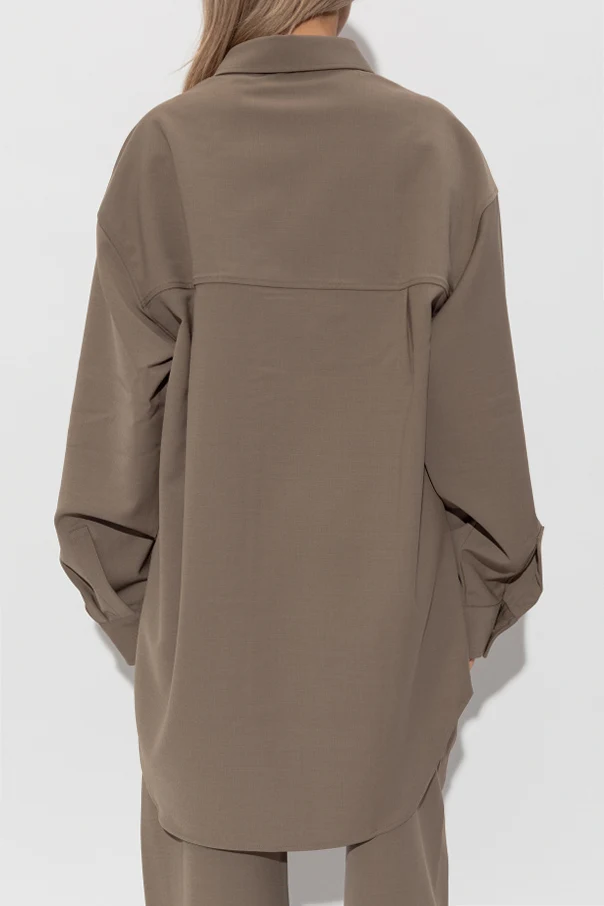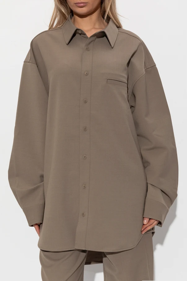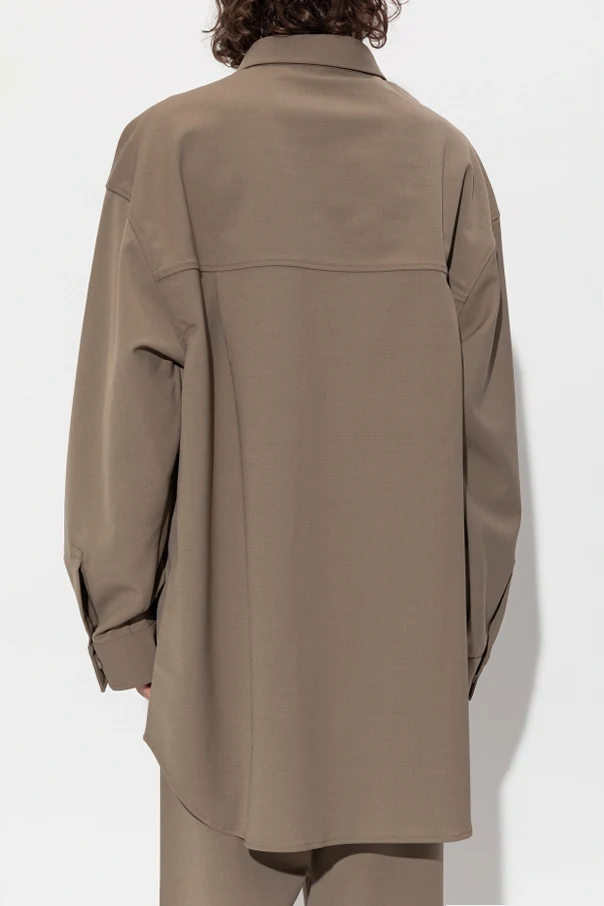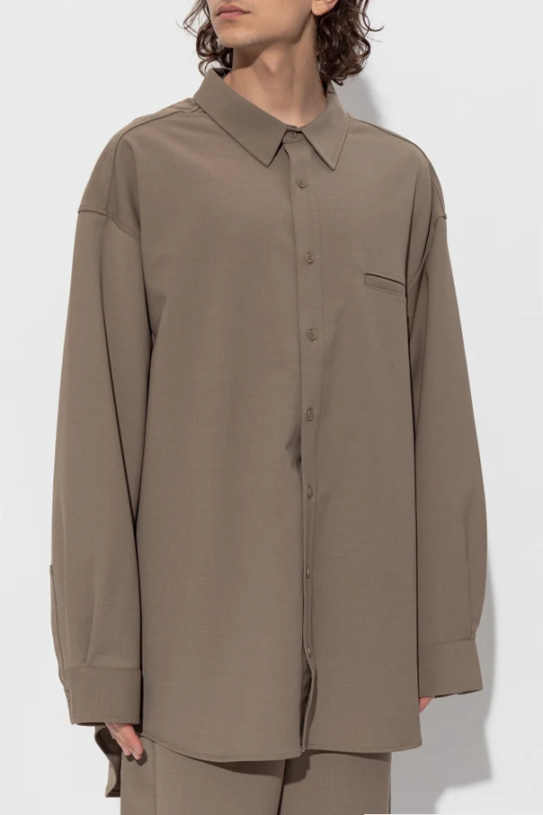 Introducing a refined unisex shirt from the exclusive ENTIRE STUDIOS collection—a masterful balance of effortless sophistication and contemporary design. This piece boasts a relaxed, oversize silhouette with a distinctive dropped-shoulder construction, echoing modern elegance and providing exceptional comfort. A gently rounded hem, purposefully extended at the back, imbues the shirt with an air of understated confidence. The shirt’s minimalistic aesthetic is elevated by its immaculate, uniform beige hue. Crafted from a sumptuous high-quality blend with a subtle, textured finish, its fabric alludes to refined craftsmanship and enduring style. A long sleeve with a pronounced, wide cuff enhances its unique visual narrative, while the singular pocket detail punctuates the shirt’s clean, timeless appeal. Why choose this product? Exquisite materials seamlessly blend tactile richness with durability Modern, unisex fit for remarkable versatility and comfort Minimalist design ensures effortless pairing with any sophisticated ensemble Signature ENTIRE STUDIOS tailoring for a truly distinctive look