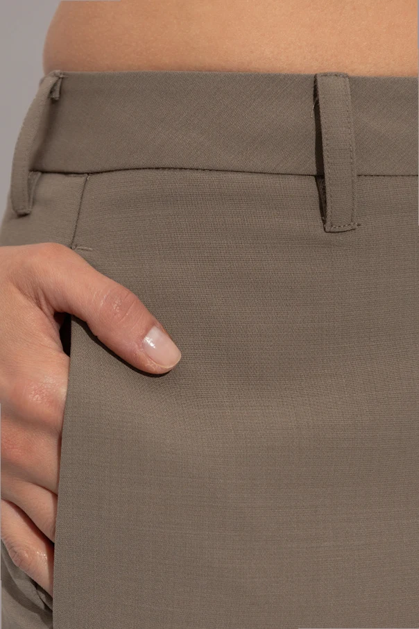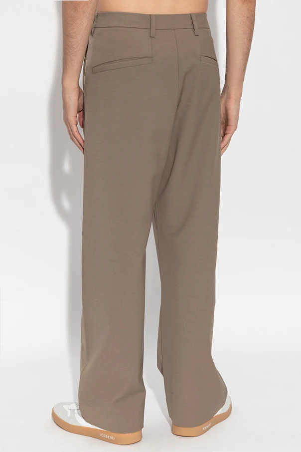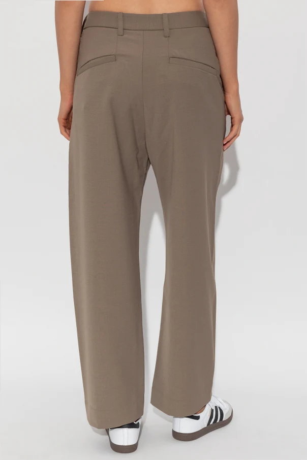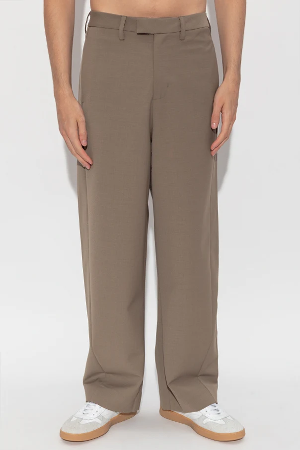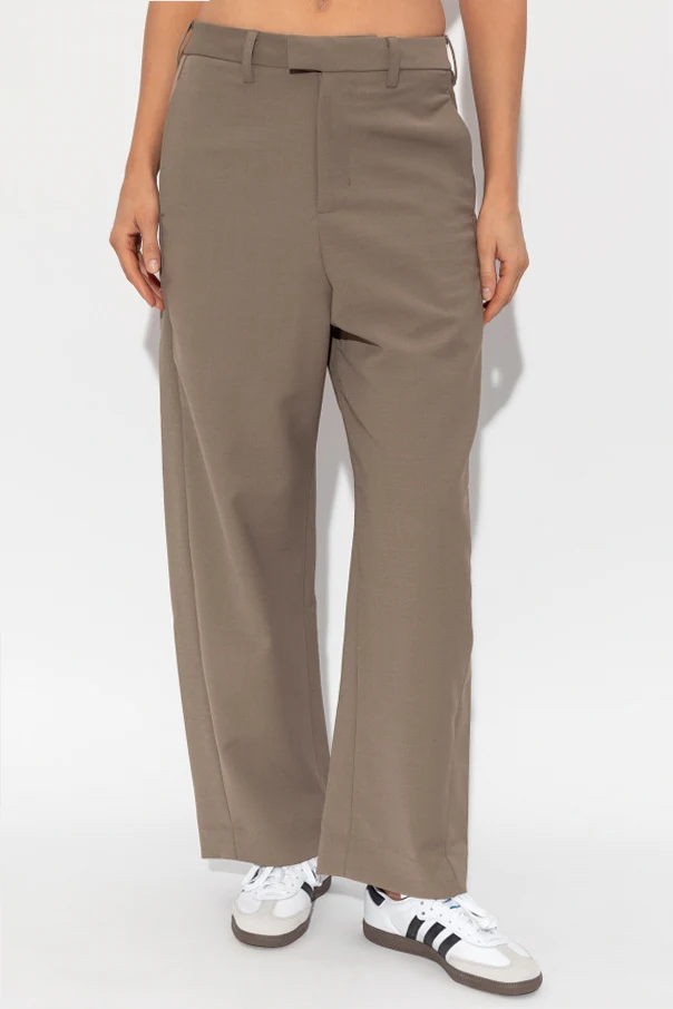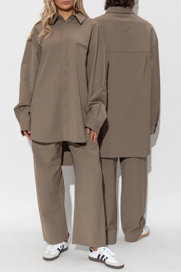 Elevate your wardrobe with the refined sophistication of these wide-leg beige trousers by ENTIRE STUDIOS. Impeccably tailored from a smooth, subtly matte fabric, these pants offer a harmonious blend of comfort and understated luxury. The regular waist design features a classic zipper and a discreet button hidden beneath the waistband, epitomizing elegant minimalism. The wide, straight leg delivers a graceful silhouette while ensuring ease of movement and effortless versatility. With their seamless side pockets and understated belt loops, these trousers embody a timeless, gender-neutral style. The monochromatic, pattern-free finish underscores the meticulous craftsmanship characteristic of exclusive collections, making them the ultimate wardrobe essential. Why choose this product? Exceptional comfort and freedom of movement Luxurious, high-quality fabric with a polished finish Versatile beige hue suitable for diverse ensembles Meticulous tailoring with discreet, practical details Signature design by ENTIRE STUDIOS