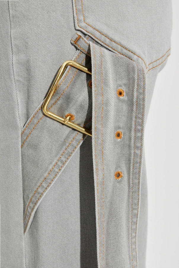 Elevate your wardrobe with the ‘Lisa’ boyfriend jeans from DARKPARK — an understated masterpiece designed for the discerning woman. Crafted from premium, rigid denim composed exclusively of cotton, these jeans present a refined, oversized silhouette with a high-rise fit and classic waistband. The light gray hue, imbued with a subtle washed effect, exudes both sophistication and versatility. Distinctive details, including raw, frayed hems and bold orange contrast stitching, offer a nuanced homage to denim traditions. A wide, gold-tone adjustable buckle at the side not only adds a striking decorative accent, but also provides a tailored fit. Thoughtfully designed pockets—regular at the back, with an additional side pocket—combine utility with contemporary flair. Why choose this product? Expertly constructed from high-quality, structured cotton denim Effortlessly chic, oversized boyfriend cut for modern appeal Elegant gold-tone side buckle for unique adjustment and style Stunning light gray wash with signature orange stitching Distinctive raw hem for a stylish, contemporary finish