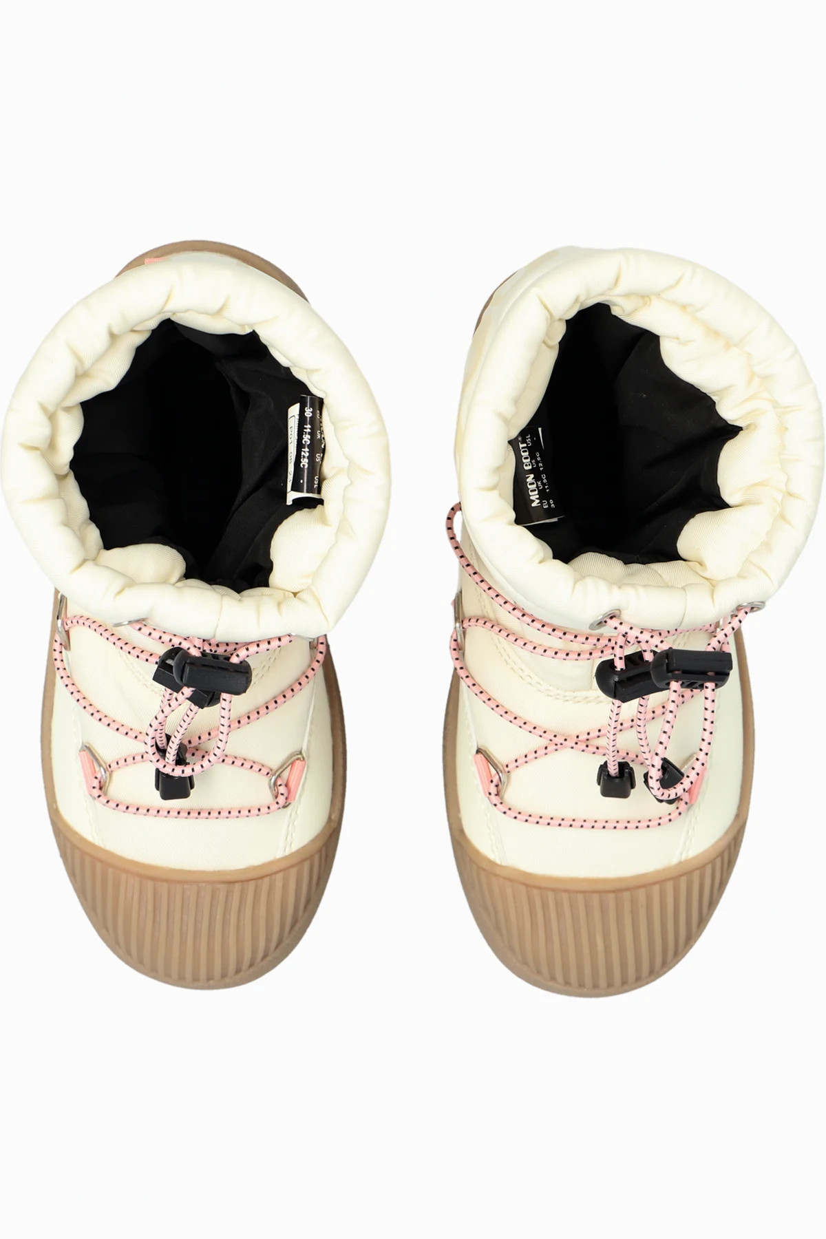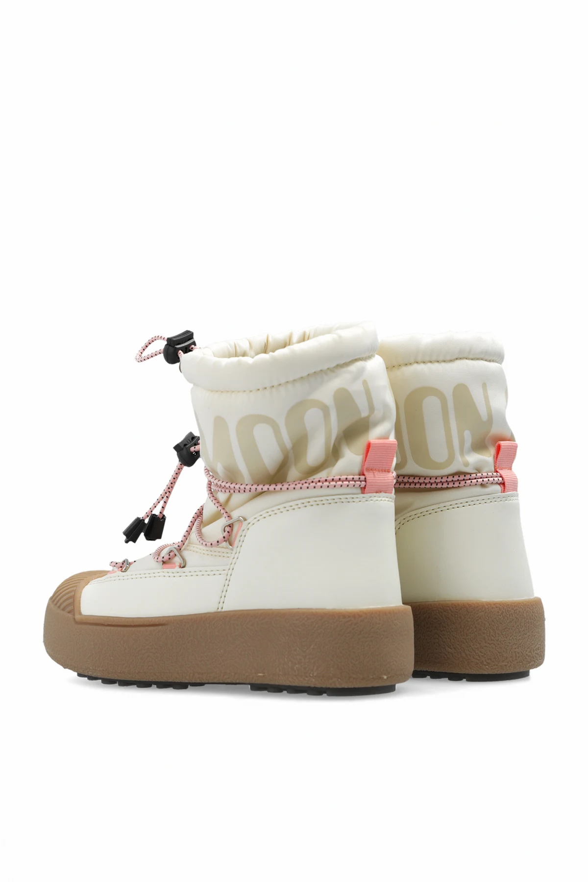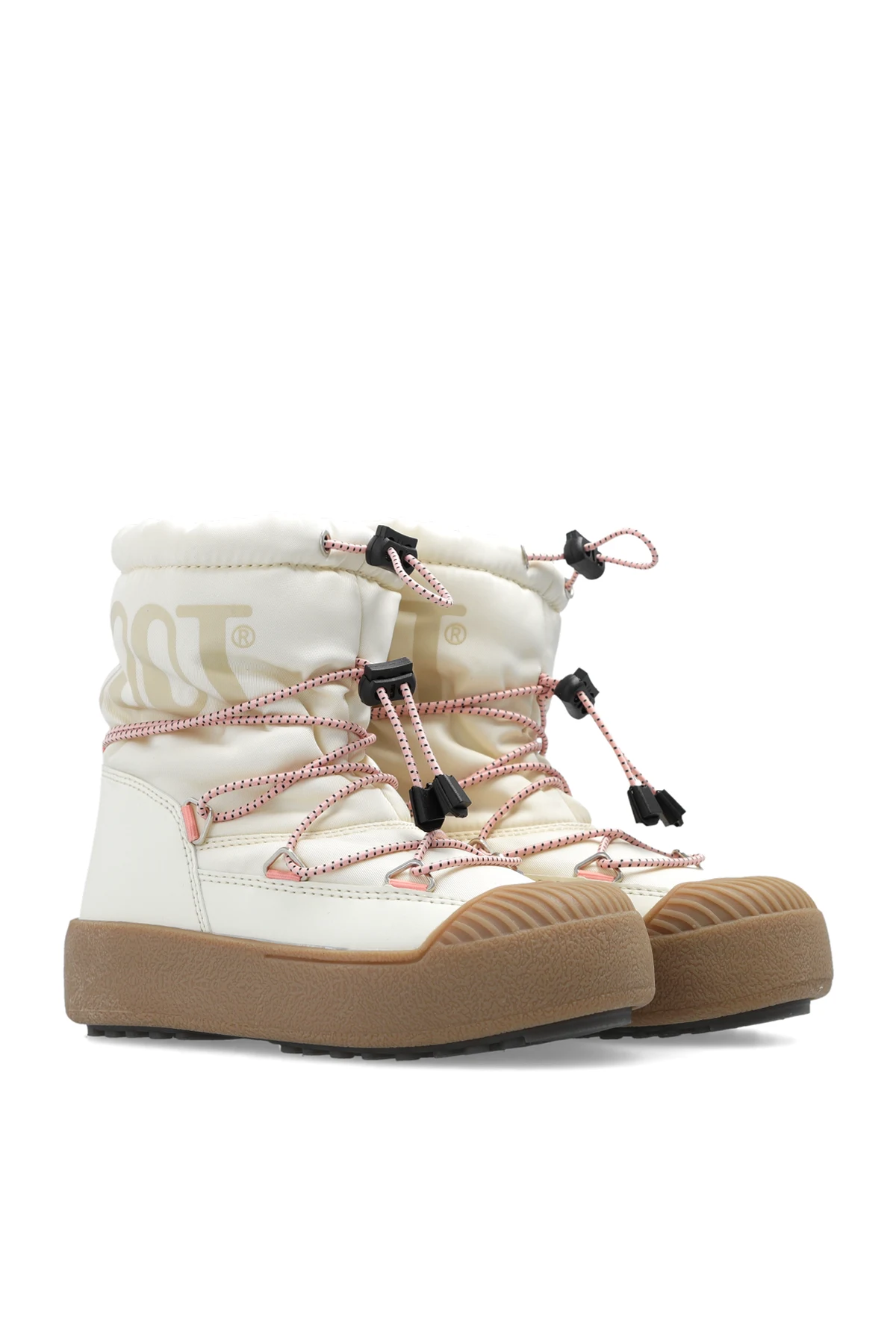 Cream ‘Jtrack Polar’ snow boots from Moon Boot. Made of waterproof material and equipped with a quick-lace system, this model showcases the brand's logo, silver-tone metal hardware and suction cups on a brown and grey tread rubber sole to ensure superb grip on any surface.