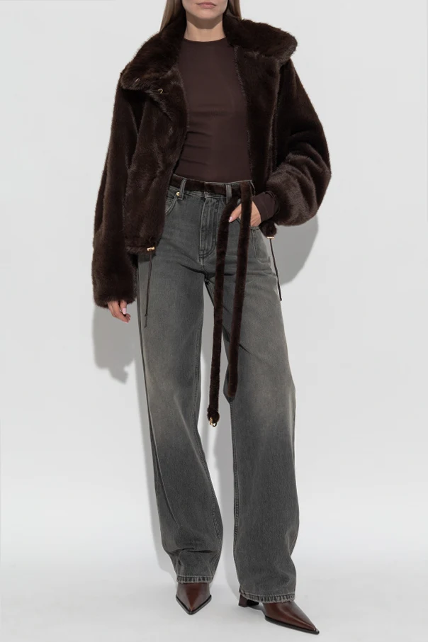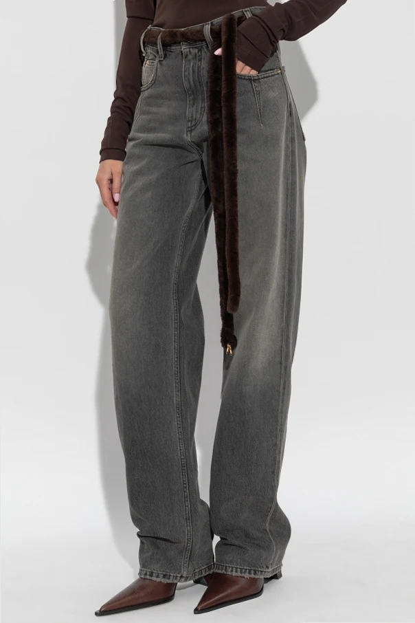 Introducing the Lu Bootcut Jeans by DARKPARK—a discerning choice for the fashion connoisseur seeking refined sophistication with a modern twist. Crafted from pure cotton denim, these jeans boast a timeless, non-stretch structure that honors the allure of classic design. The high-rise silhouette elegantly elongates the legs and accentuates the waist, while the subtly faded, vintage-inspired gray wash infuses each pair with understated character. Polished yet distinct, the minimalist design is enlivened by a striking, plush belt crafted from soft faux fur in deep charcoal, secured with two lustrous gold metal rings. This unexpected detail offers a designer flourish that sets these jeans apart and pays homage to contemporary luxury. Why choose this product? Exquisite non-stretch cotton denim delivers authentic structure and enduring quality. Bootcut silhouette with high waist provides a flattering fit and timeless appeal. Plush faux fur belt with gold rings brings unique, statement-making sophistication. Refined aged gray hue ensures effortless styling versatility. A signature piece from the visionary house of DARKPARK.