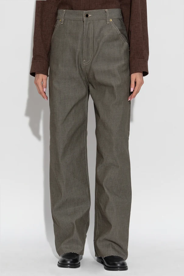 The Lisa Bootcut Jeans by DARKPARK epitomize refined sophistication with a contemporary edge. Meticulously tailored from premium, heavyweight denim, these jeans reveal striking diagonal twill lines—a testament to their authentic, non-stretch cotton construction. Their silhouette embodies classic bootcut form, gently flaring from the knee for a versatile, relaxed fit complemented by a high-rise waist. Finished in a sublime, muted olive hue, this design forgoes distressing in favor of an unadulterated, polished look. Distinctive elements include bold, contrasting topstitching, a signature metal button, and a thoughtfully arranged set of five pockets: two front, two back, and a refined coin pocket. Why choose this product? Exquisite, heavyweight denim ensures exceptional durability and structure Elegant bootcut design flatters the natural silhouette Striking olive shade offers a unique, sophisticated twist on a timeless classic Distinctive, contrasting stitching and premium metal hardware elevate the craftsmanship Five-pocket configuration provides both style and functional versatility