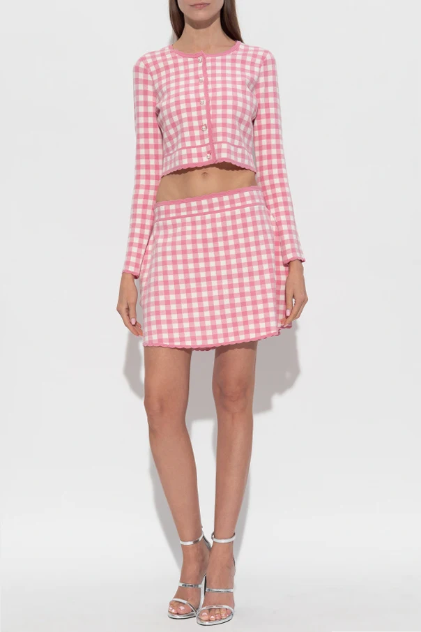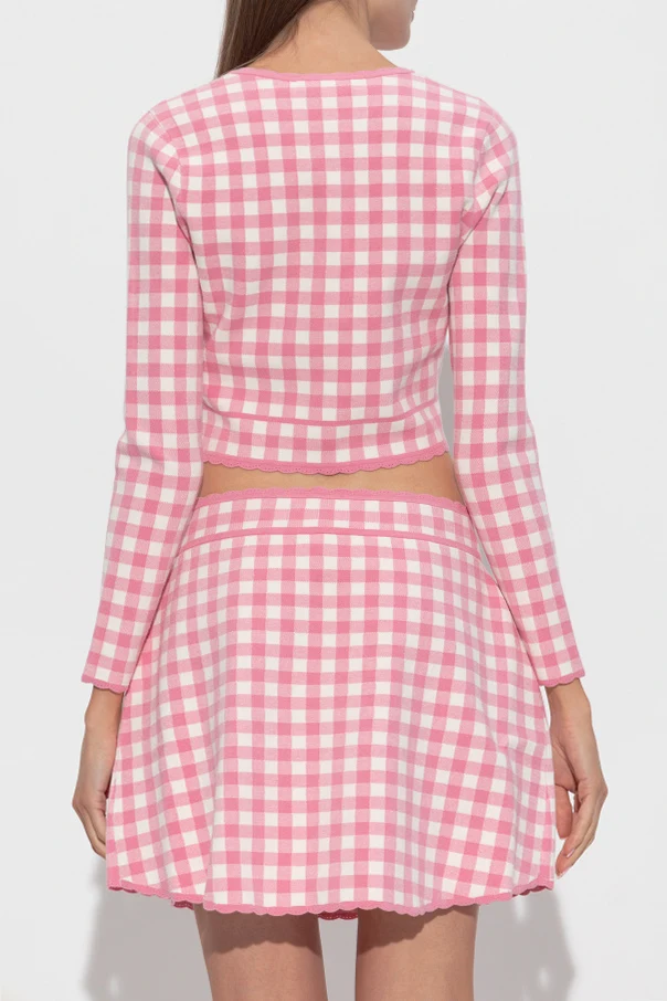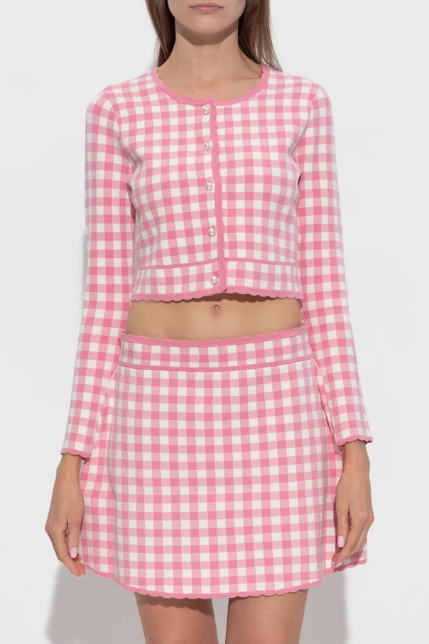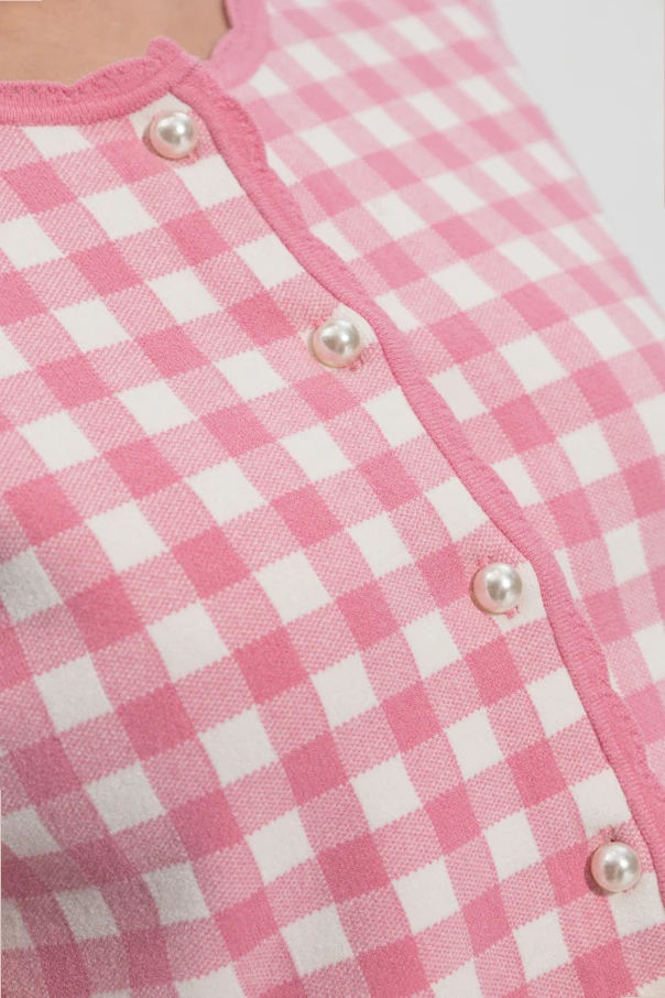 Immerse yourself in the refined charm of the Bridgette Cardigan from the exclusive LoveShackFancy collection. This cropped, form-fitting piece artfully showcases a delicate pink and white gingham pattern, striking a harmonious balance between timeless sophistication and youthful vibrancy. Expertly knitted from a sumptuous blend of viscose, elastane, and polyester, its buttery-soft, flexible texture ensures daylong comfort and effortless poise. The opulent row of pearl-inspired buttons serves as both an elegant focal point and a symbol of elevated taste, while the lettuce hem details at the neckline, cuffs, and waist add a gentle, whimsical flourish. Every element of this cardigan radiates understated luxury and modern femininity—a rare and coveted addition to a discerning wardrobe. Why choose this product? Striking pink gingham design for classic-meets-contemporary appeal Luxuriously soft, flexible knit for all-day elegance Pearl-style buttons and lettuce hems enrich its unique character Expert craftsmanship from iconic designer LoveShackFancy An exclusive, limited-edition piece for sophisticated ensembles