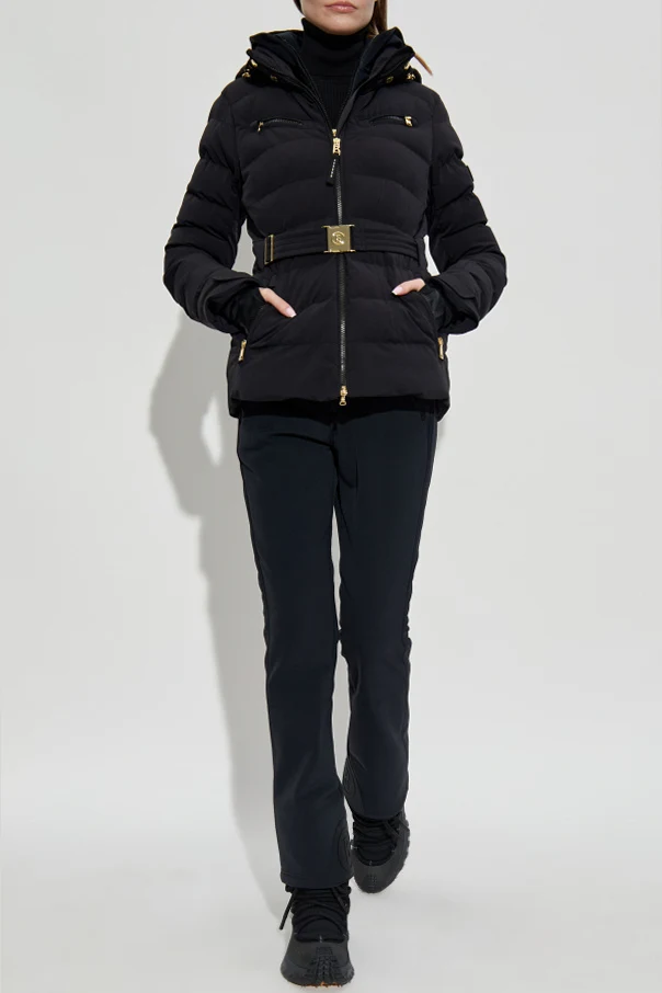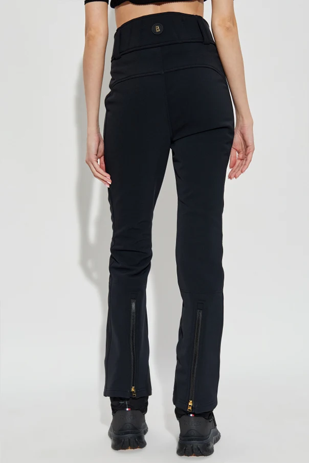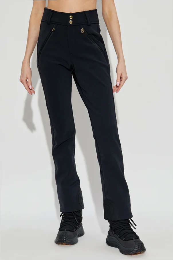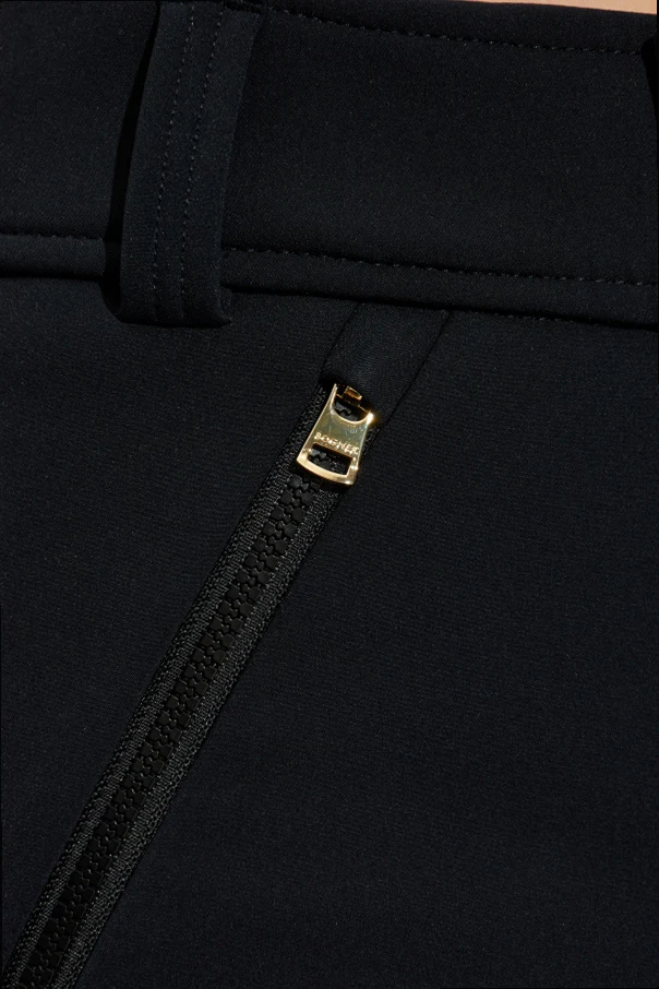 Embrace alpine sophistication with the Hazel2 ski pants by BOGNER, exquisitely tailored for the modern woman. The striking, matte black finish and contoured, subtly flared silhouette elegantly accentuate the feminine form while providing freedom of movement on the slopes. A high-rise waist ensures superior comfort and protection, shielding you from snow and cold. Crafted from an advanced, technical blend of elasticated polyamide, elastane, and polyurethane, these pants offer exceptional water resistance and breathability—perfectly suited for demanding ski conditions. Distinct diagonal front pockets feature gold-tone zippers for both practical utility and visual allure, complemented by signature designer branding on the belt. Rear zippers at the cuffs allow effortless layering over ski boots, while opulent gold details lend a touch of refinement. Why choose this product? Flattering, high-rise and slightly flared cut Premium water-resistant, breathable technical fabrics Luxurious gold-tone details and designer accents Practical zippers at cuffs and pockets for convenience Exclusively designed by BOGNER for discerning skiwear enthusiasts
