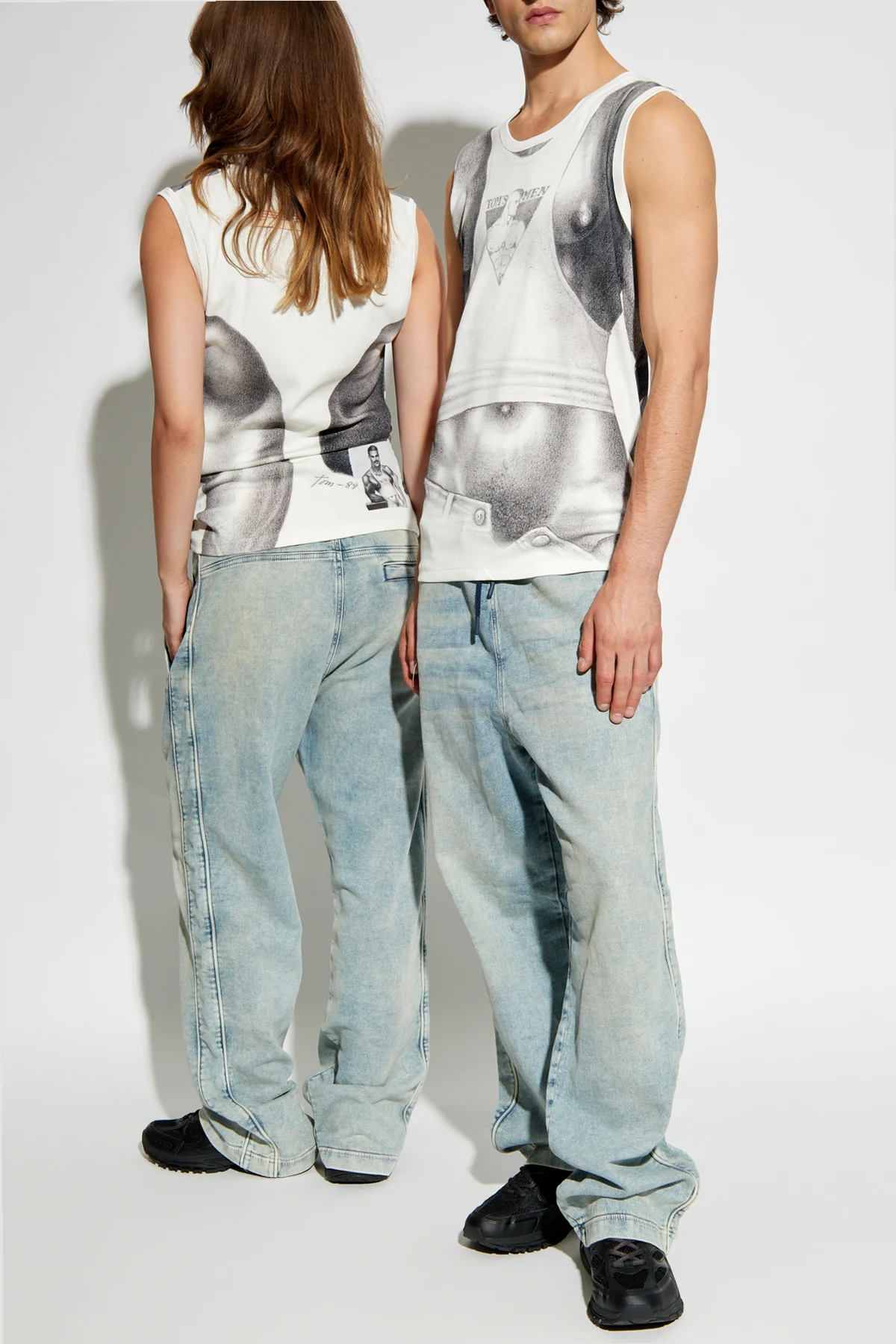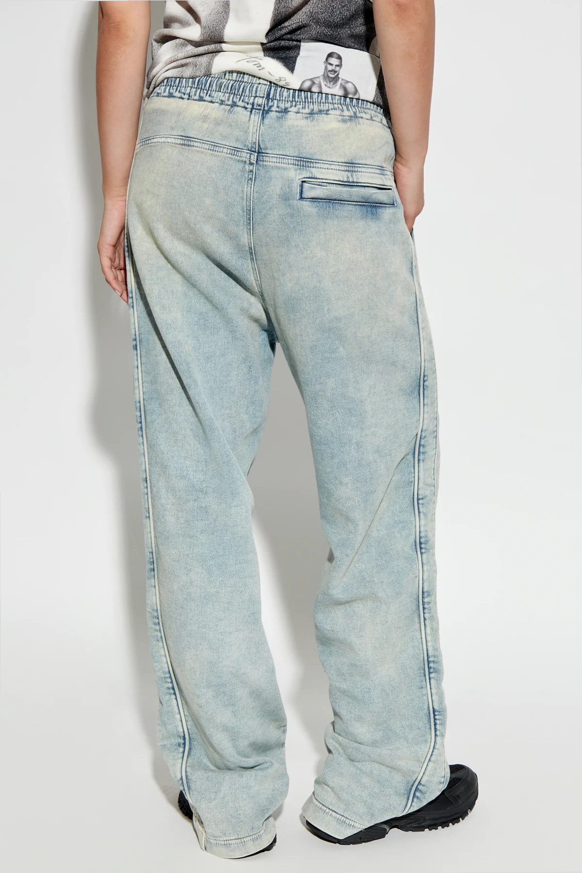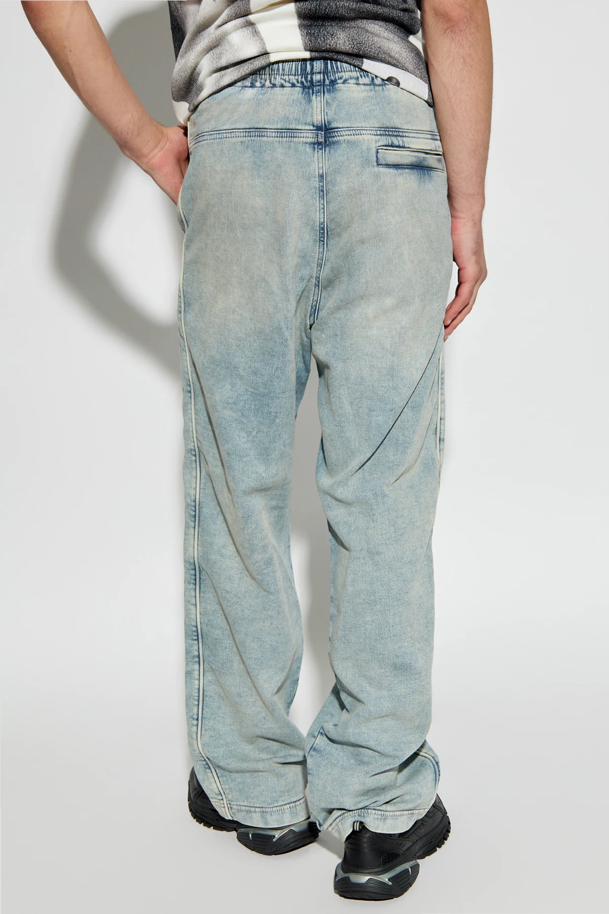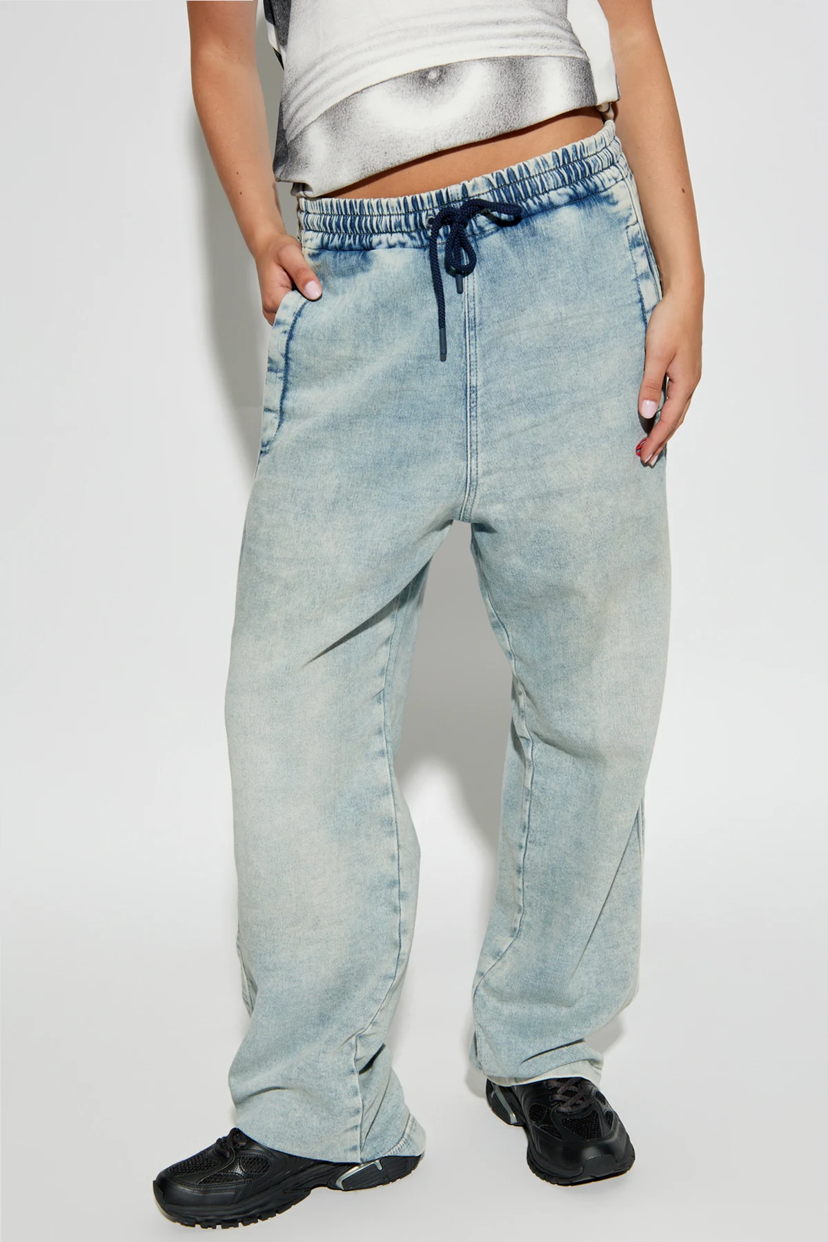 Introducing the D-MARTIANS jeans by Diesel, a harmonious blend of classic denim craftsmanship and modern, casual design. Crafted with a high-quality mixture of 98% cotton and 2% elastane, these jeans offer both durability and a slight stretch for the utmost comfort. Their light blue hue, achieved through a meticulous wash, gives each pair a unique, worn-in look that adds character and sophistication to your ensemble. The straight fit drapes loosely from the hips down to the hem, providing a relaxed silhouette that does not compromise on style. An elastic waistband, complemented by a drawstring, ensures a perfect fit while accentuating the jeans’ sporty edge. True to their utilitarian roots, the D-MARTIANS feature standard side and back pockets, enhanced by the distinctive red logo patch of Diesel, subtly placed near the front pocket for an unmistakable mark of quality and design prowess. The jeans are further characterized by their light-colored stitching, creating a striking contrast that highlights the impeccable construction. With a total of three well-placed pockets, they blend functionality with a sleek aesthetic, making them an essential addition to any discerning wardrobe. Why Purchase This Product? Premium quality materials for durability and comfort. Unique light blue wash for a distinctive, stylish appearance. Versatile straight fit with an elastic waistband and drawstring for an optimal fit. Elegantly designed with subtle branding and contrast stitching details. Functional with three practical pockets, melding style and utility.