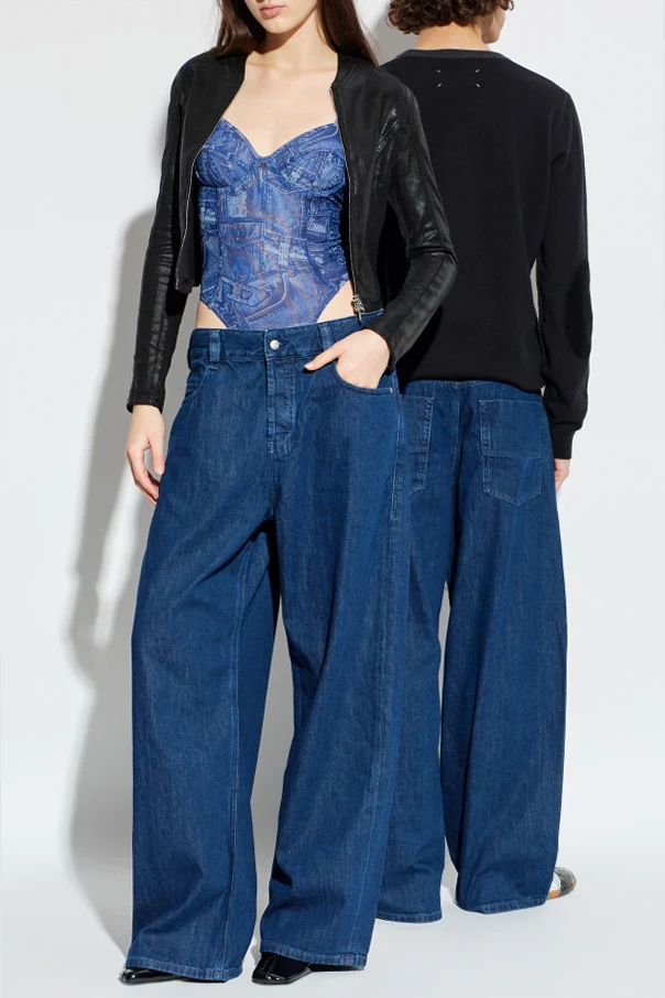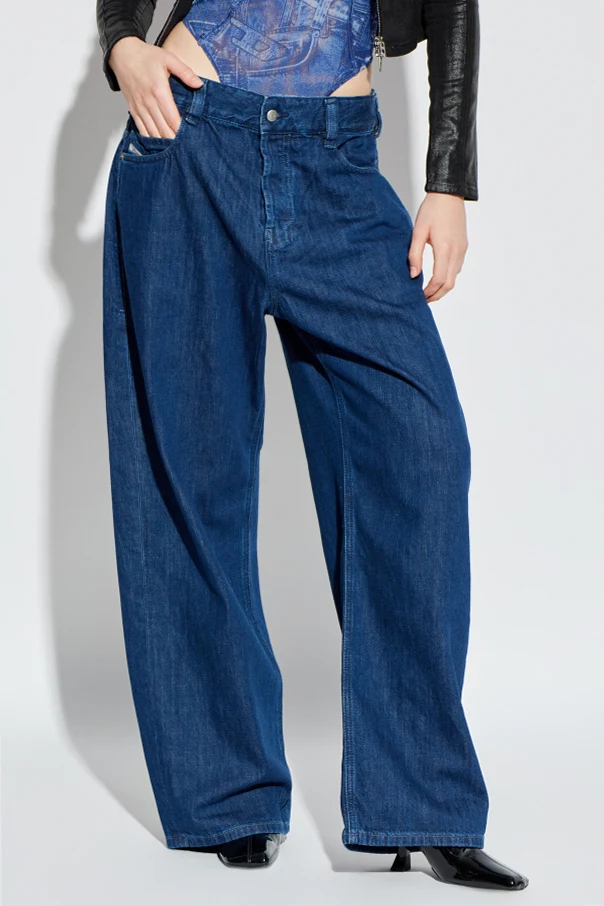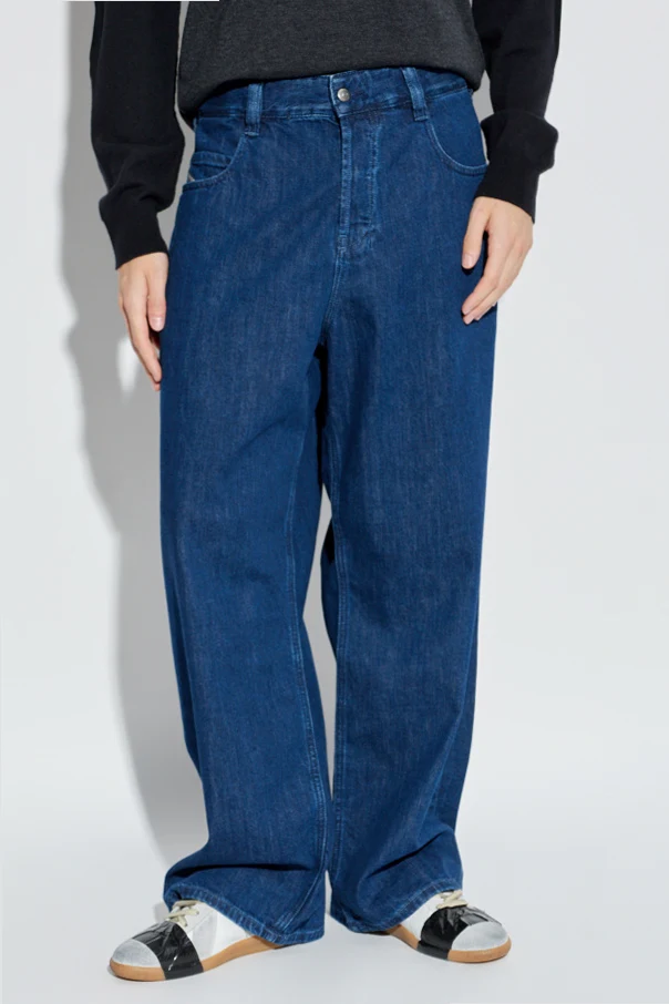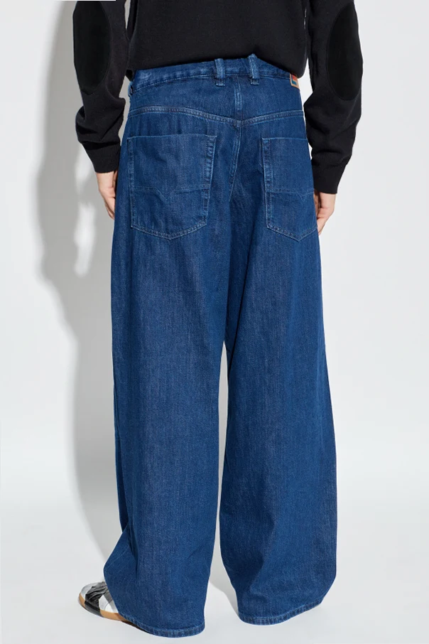 Imbued with refined simplicity, the 1997 D-ENIM-M jeans by Diesel exemplify contemporary sophistication. Crafted from resilient navy cotton denim with no stretch, these jeans possess a distinct, structured feel and maintain their elegant silhouette throughout wear. The wide-leg cut and high-rise waist shape a relaxed, yet polished profile, making them a distinguished piece in any modern collection. Featuring the classic five-pocket design, the front pocket is adorned with Diesel Industry’s signature patch for a subtle nod to authenticity. A branded leather patch at the rear waistband further distinguishes these jeans as an exclusive Diesel creation. Each detail attests to Diesel’s heritage of Italian excellence and timeless design. Why choose this product? Wide-leg, straight fit for elevated comfort and modern style Durable, high-quality cotton denim ensures long-lasting structure Diesel Industry and branded details deliver unmistakable exclusivity Iconic navy hue adds effortless versatility to any wardrobe Perfect balance between casual elegance and statement design