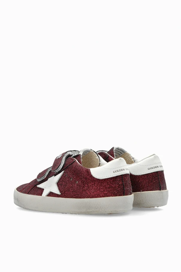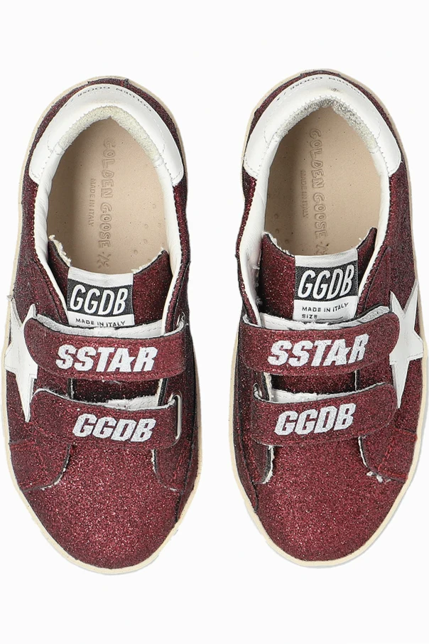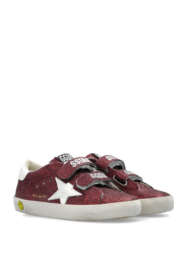 Step into the world of refined elegance with the Old School sneakers from the esteemed Golden Goose Kids collection. These children's sports shoes exude a sophisticated charm with their dominant burgundy hue, adorned with a shimmering finish that captivates the modern aesthetic.