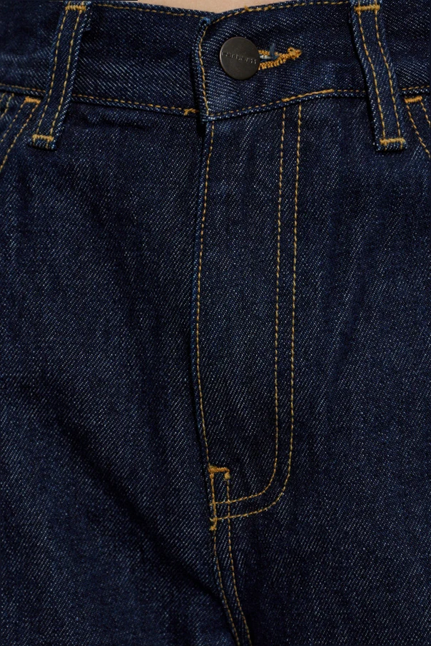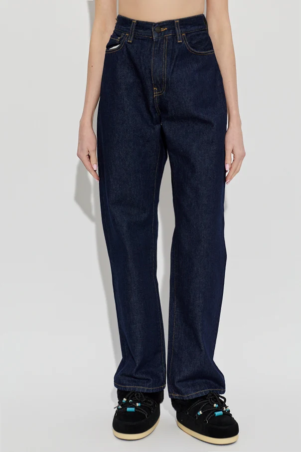 Experience the enduring sophistication of the Smith Straight Jeans by Carhartt WIP, meticulously tailored in a deep navy blue. Cut in a timeless straight silhouette, these jeans epitomize versatility and ease, making them a perennial staple in any discerning wardrobe. Crafted from premium, non-stretch cotton denim, their raw, robust weave not only underscores exceptional quality but also ensures unwavering durability. The smooth, solid hue is elegantly unembellished, allowing the artisanal contrast yellow stitching and signature five-pocket design to stand out with understated distinction. Details such as belt loops, a classic metal button and zip fastening, and the designer's label discreetly affixed to the rear pocket accentuate both function and exclusivity, reflecting Carhartt WIP’s storied heritage and contemporary sensibility. Why choose this product? Luxurious, high-quality non-stretch denim Timeless, universally flattering straight-leg cut Exquisite contrast stitching for an authentic touch Functional five-pocket construction Subtle designer detail ensures recognizable sophistication