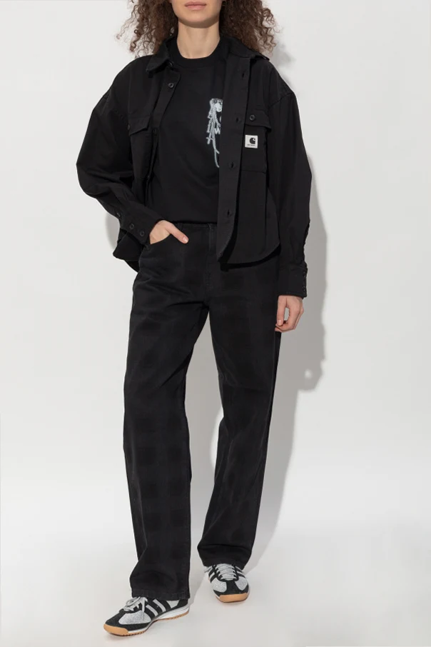 The Bradford Jeans by Carhartt WIP encapsulate the essence of timeless sophistication and urban sensibility. Crafted from premium, heavyweight denim, these jeans offer a distinguished, regular fit silhouette with a smooth, lightly relaxed leg and elevated high waistline. Devoid of elastic fibers, their pure cotton structure maintains a commanding shape and durable feel. Subtle black plaid shading adds an intriguing dimension, merging classic inspiration with modern refinement. Essential details include a traditional zip fly secured by a metallic button and the refined layout of two front and two back pockets. The right back pocket is adorned with a striking white patch featuring the Carhartt signature logo, ensuring unmistakable designer appeal. Why choose this product? Exclusive high-quality heavyweight denim for remarkable durability Distinctive black plaid pattern for understated sophistication Signature Carhartt branding for iconic recognition No-stretch composition for lasting structure and fit Thoughtfully tailored for both comfort and style