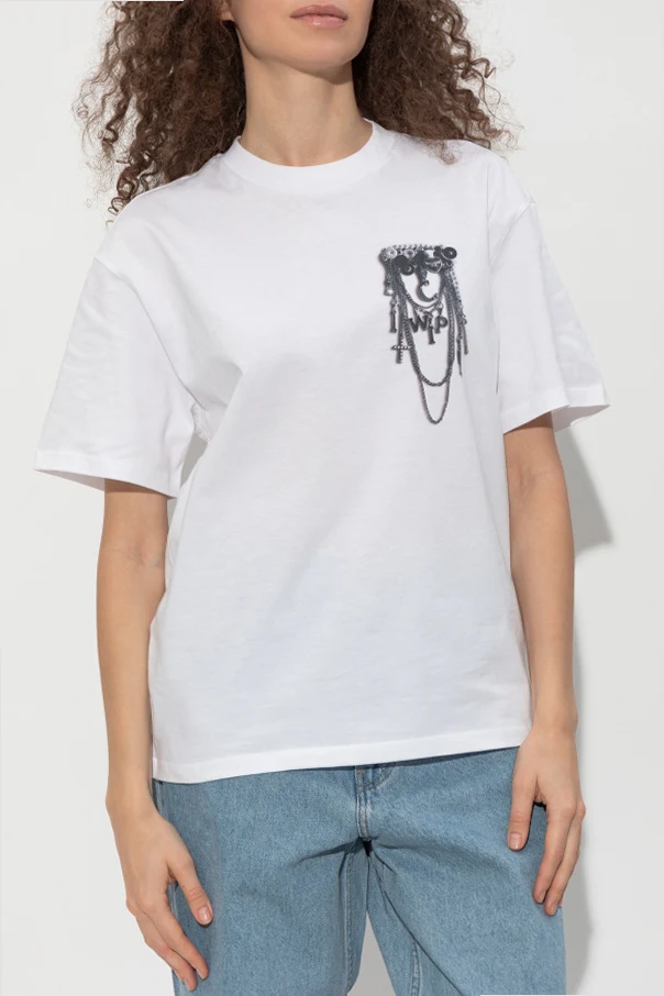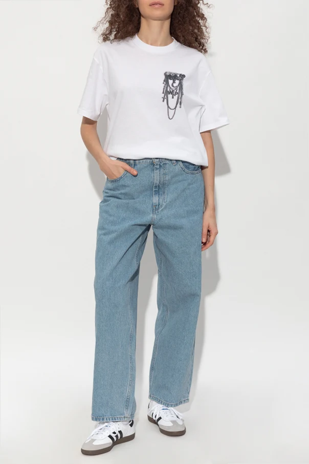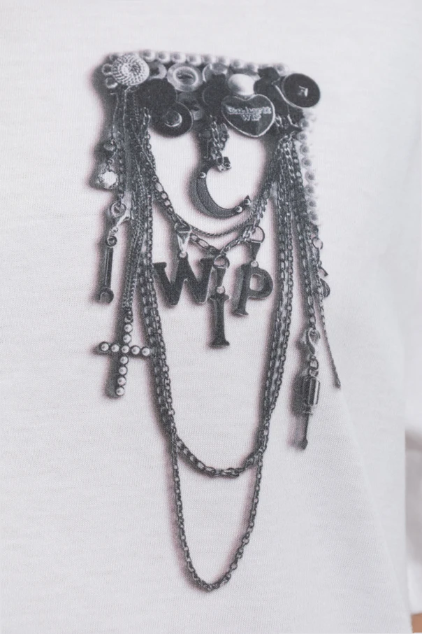 Distinguishing itself with an exquisite front print, the design features a hyper-realistic silver charm motif—detailed with chains, pins, and the iconic “WIP” lettering—subtly referencing Carhartt’s renowned heritage and contemporary flair. The ornamental chest detail captures the spirit of forward-thinking design, reminiscent of the label’s pioneering approach to workwear since its Detroit origins.