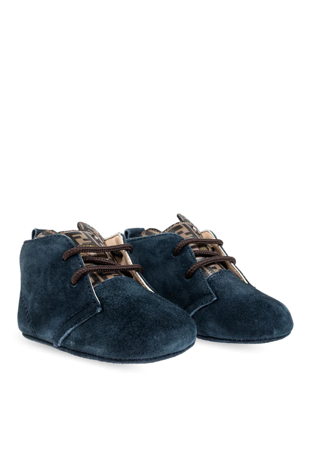 Introducing the exquisite Suede Shoes by Fendi Kids , an epitome of elegance and sophistication for the little ones. Crafted from sumptuous suede in a deep navy hue, these shoes exude a refined allure.
