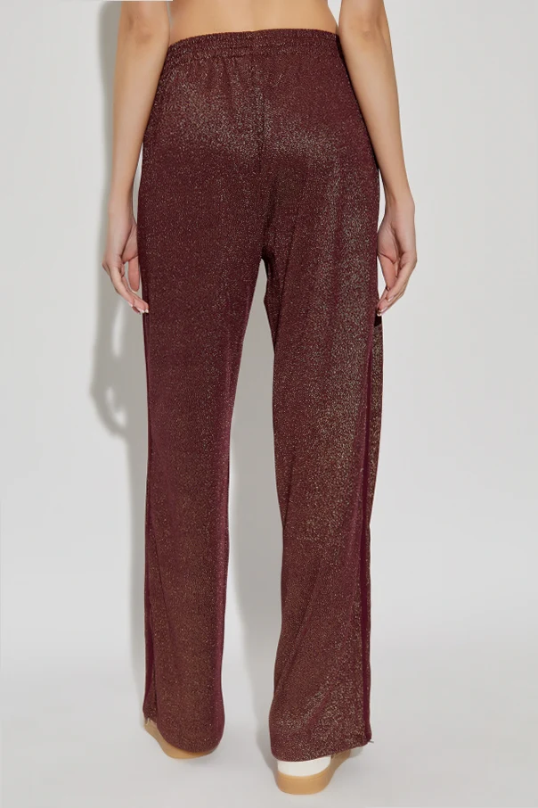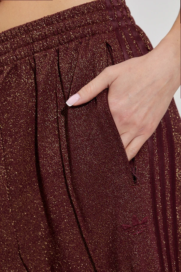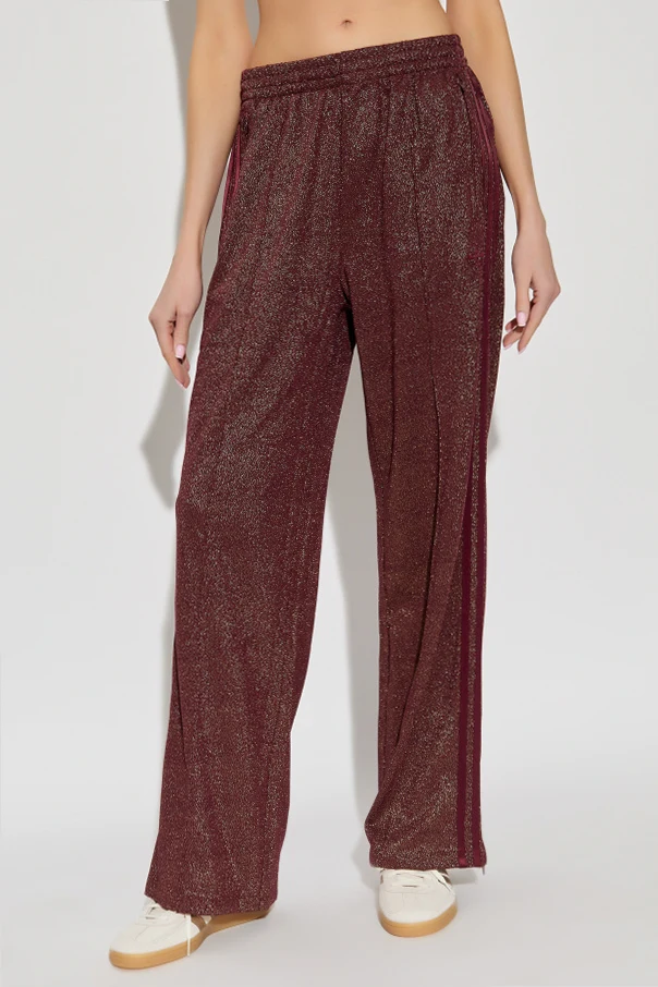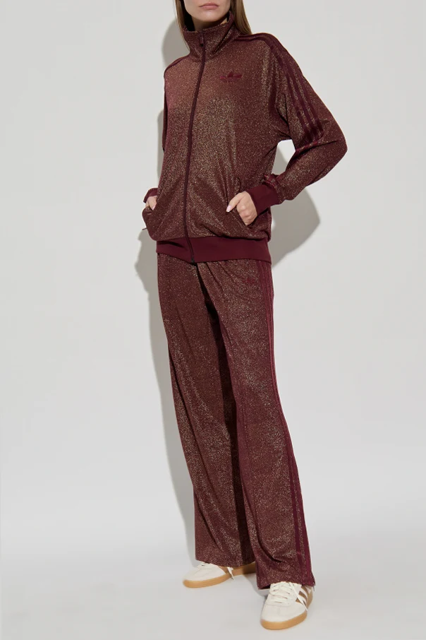Discover a harmonious blend of timeless design and modern opulence with these burgundy turtleneck sweatpants by ADIDAS Originals . Crafted from a fine, lightweight polyester, the fabric is interwoven with luminous Lurex thread, producing a striking, metallic sheen that catches the light with every movement. The classic silhouette features straight, wide legs gently flaring from the hips, finished with tonal side stripes for a tailored effect. The elasticized waistband ensures comfort with a refined finish, while zippered patch pockets add practicality with understated elegance. A discreet, tonal embroidered logo graces the left leg, exemplifying subtle distinction. Why choose this product? Exquisite Lurex-infused fabric for a radiant luster Rich burgundy hue for effortless sophistication Classic, wide-leg fit enhances comfort and poise Functional zippered pockets for elevated utility Signature ADIDAS Originals artistry in every detail