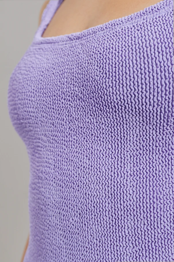 Meticulously constructed from a premium, smocked fabric, the material delivers exquisite stretch and structure, ensuring a flattering fit that molds gracefully to the body. Subtle texturing and the absence of visible branding celebrate minimalist luxury, while the rich, substantial weave offers superior coverage and enduring quality.