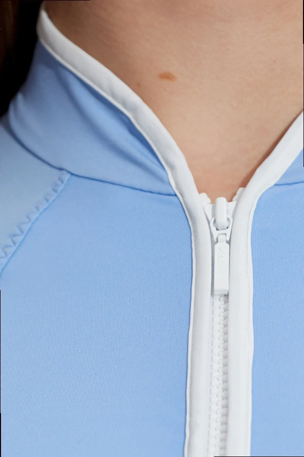 Experience the refined allure of the Tyra One-Piece Swimsuit by Hunza G , presented in a striking black hue. Designed for unparalleled sophistication, this singular piece features a sculpting, body-hugging fit with elegant long sleeves and a smooth, monochromatic finish – free from prints or embellishments. Crafted from a premium blend of smooth, resilient synthetic fibers, the Tyra promises both luxurious comfort and exceptional adaptability to the body. The centerpiece of this design is a distinctive, elongated front zipper in crisp white, extending to a softly structured, short stand-up collar edged in matching white trim, offering both visual contrast and versatile neckline adjustment. Why choose this product? Exquisite, figure-flattering silhouette Timeless, versatile black color Innovative zipper detail for custom styling Sumptuous, high-quality fabric for durability Meticulous craftsmanship by renowned designer Hunza G