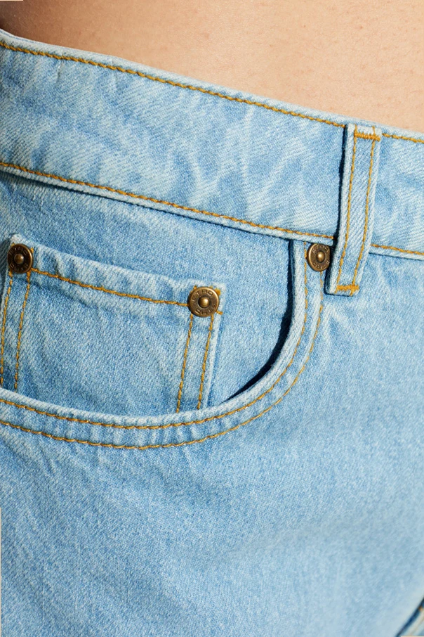 Impeccable construction with iconic contrast stitching and five-pocket styling