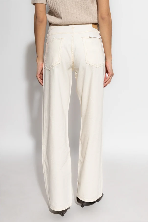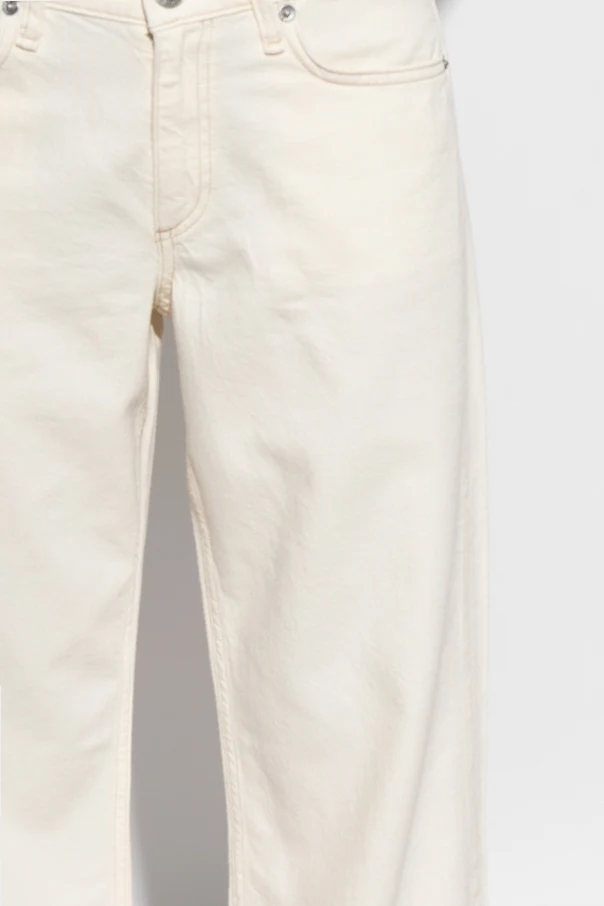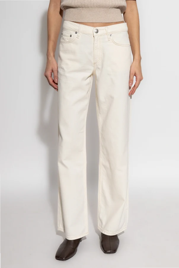 Impeccably refined, these straight-leg jeans by Rag & Bone embody the essence of understated sophistication. Expertly crafted from traditional, non-stretch cotton denim, they offer an authentic and substantial hand-feel that speaks to the highest standard of quality. The unique deep blue hue is subtly elevated by a delicate faded gradient across the thighs and knees, adding dimension without compromising minimalist allure.