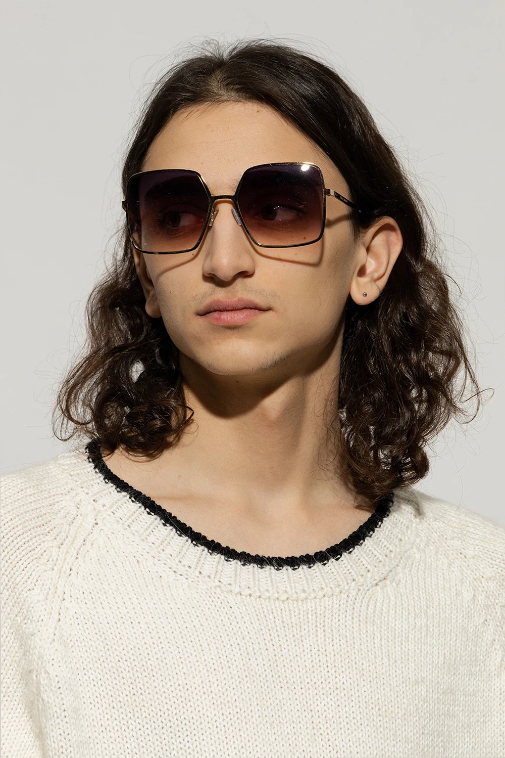 Gold-tone sunglasses from Isabel Marant. With square frames, this model features the brand\'s signature motif and logo engraving on the temples and brown lenses with 100% UV protection. Case included.