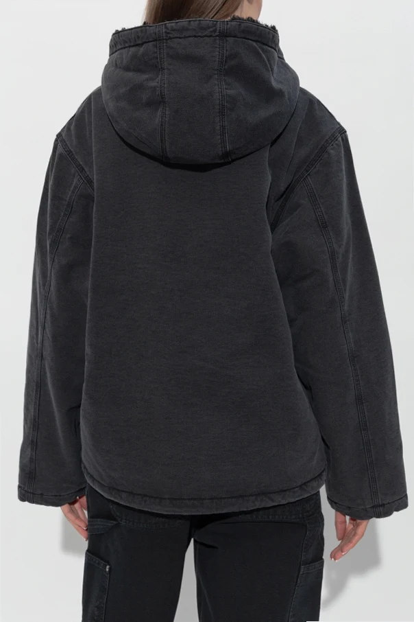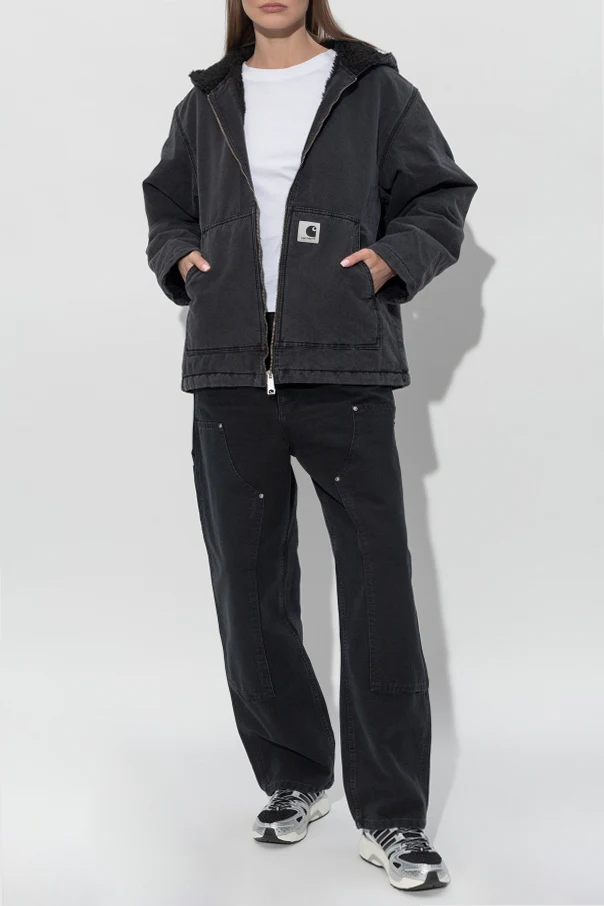 Elevate your outerwear repertoire with the Mitch Insulated Jacket by Carhartt WIP. Crafted from robust cotton canvas, this jacket marries utilitarian heritage with modern street sophistication. Its subtly oversized silhouette, accentuated by dropped shoulders and a straight hem, exudes effortless poise, while the ample hood and full-length, sturdy metal zipper offer both practicality and urban allure. The smooth, pattern-free exterior showcases statement seam lines and contrasting raw-edge finishes for a discerning touch of vintage, workwear-inspired character. Inside, plush faux-shearling lining in deep black envelops you in supreme warmth and comfort. Two generously sized front patch pockets provide functional appeal and are complemented by a refined designer logo on the left pocket—a discreet nod to Carhartt WIP’s legacy of quality and innovation. Why choose this product? Expertly constructed from premium cotton canvas for enduring strength Luxurious faux-shearling interior ensures superior insulation Timeless design elevated by contemporary, distinctive finishes Roomy silhouette offers both comfort and layering potential Heritage branding from Carhartt WIP, a benchmark of American craftsmanship