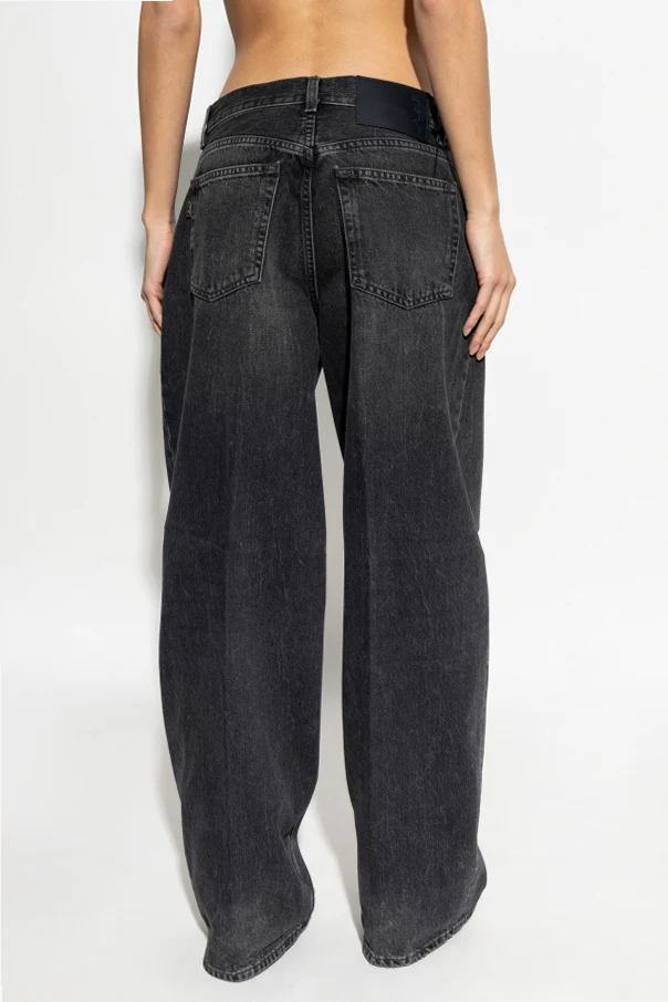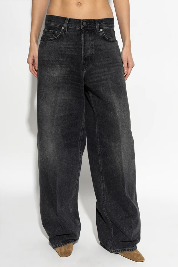 Introducing the Bethany Jeans by Haikure, a masterfully crafted piece in rich blue that embodies timeless elegance. Constructed from robust, authentic denim, the expertly woven fabric exudes a distinguished texture and enduring quality unique to no-stretch cotton. The high-rise silhouette gracefully embraces the waist, while the barrel-shaped, bootcut legs flow effortlessly to the floor, sculpting a modern yet classic profile.