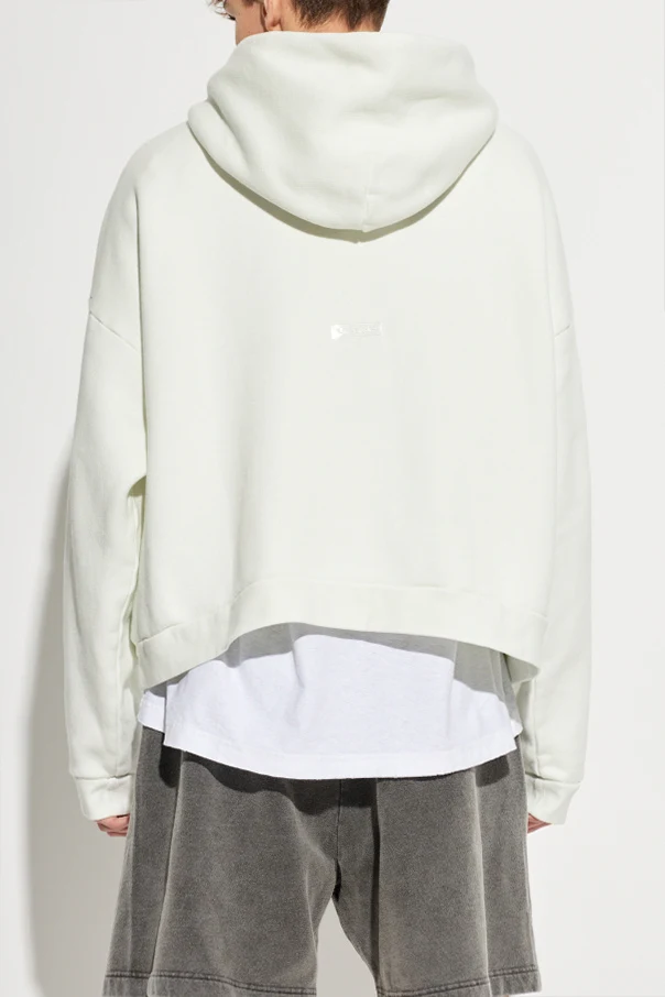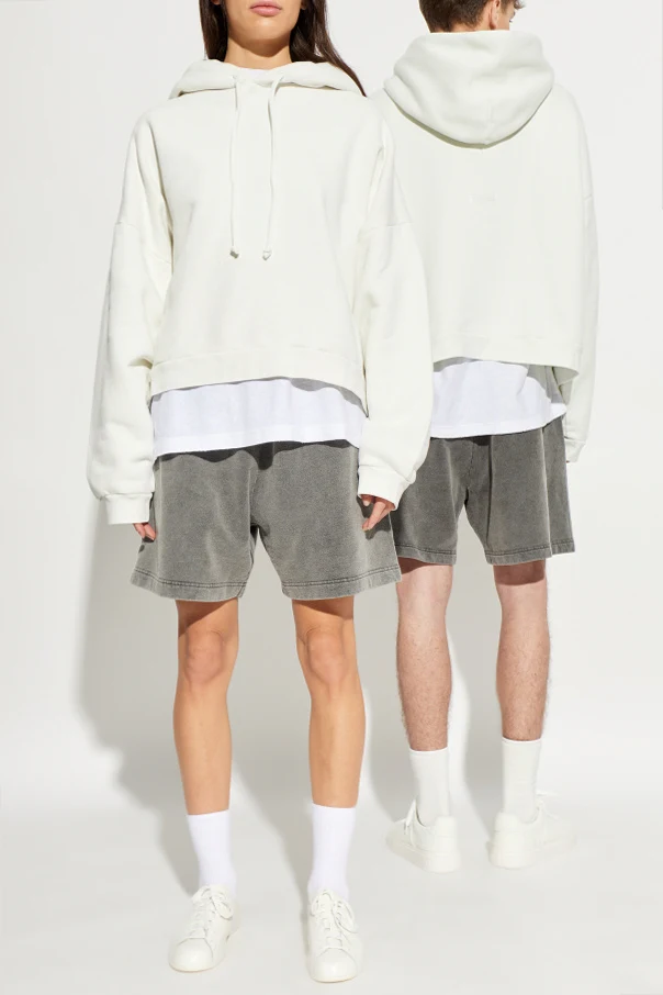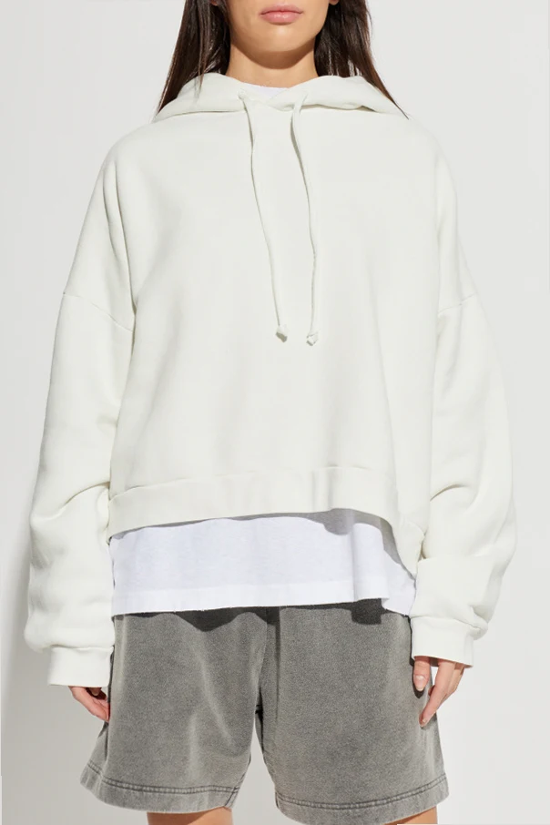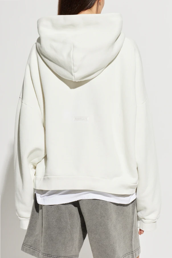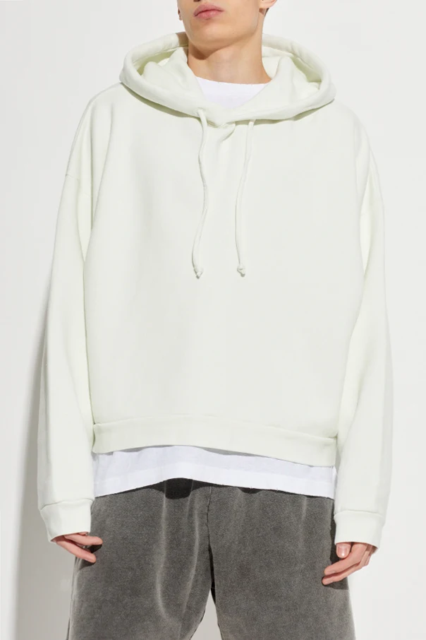 Embrace unparalleled sophistication with this pristine white unisex hoodie by Acne Studios . Meticulously crafted from soft, premium cotton, this piece boasts a sumptuous matte finish that exudes modern elegance. Its generously oversized silhouette features a relaxed raglan shoulder, voluminous sleeves with refined ribbed cuffs, and an artful asymmetrical hem—cropped in the front, subtly elongated at the back—bestowing an effortlessly contemporary allure. The voluminous hood is adorned with wide, minimalist drawstrings, encapsulating understated luxury, while a tonal white patch at the back offers discreet yet distinctive designer detailing. Thoughtfully designed for both men and women, this hoodie redefines casual refinement. Why choose this product? Exquisite, plush cotton for supreme comfort Architectural oversized fit with artful asymmetric hem Elegant raglan sleeves and ribbed details Signature Acne Studios tonal patch for discreet designer appeal Chic unisex versatility in a luminous white hue
