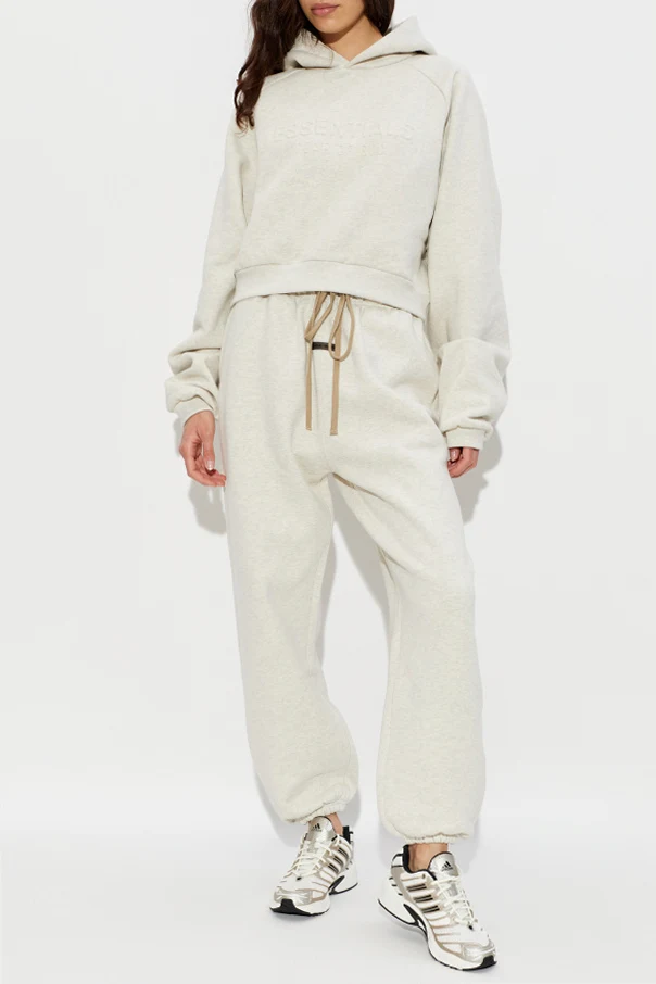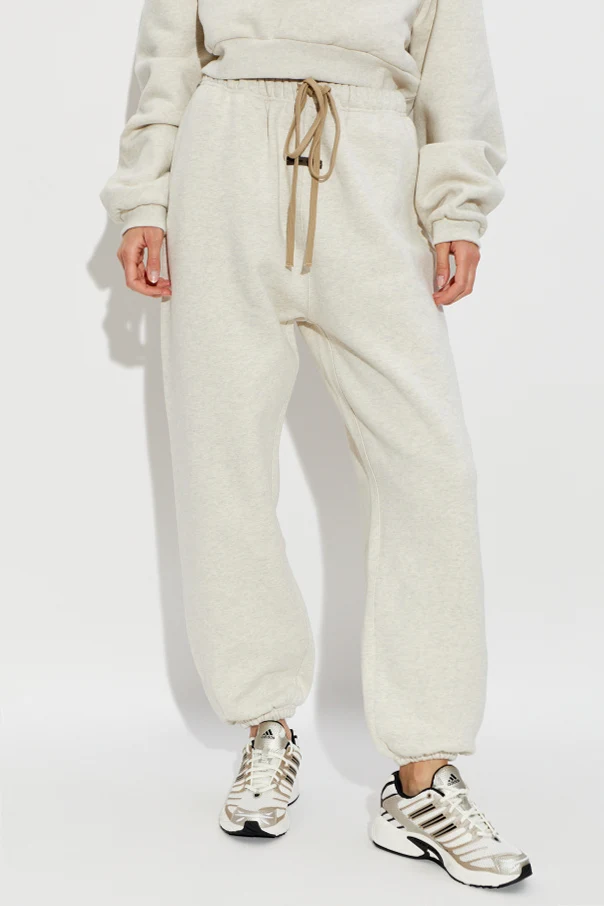 Embrace elevated comfort with these cream jogger trousers from Fear of God Essentials. Exemplifying modern refinement, this exclusive design features a relaxed, classic silhouette with tapered legs finished with elastic cuffs at the ankles, offering an effortless, tailored aesthetic.
